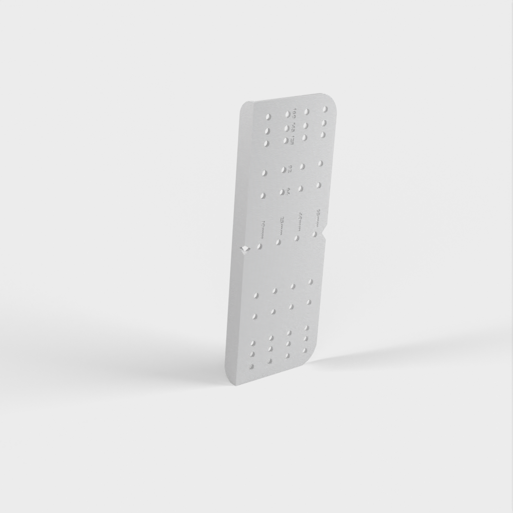 Questo modello di foratura è appositamente progettato per adattarsi a FIXA di IKEA. Il modello ha un interasse di 160 mm, il che lo rende ideale per forature di precisione. Include inoltre diverse opzioni di distanza dal bordo, tra cui 10 mm, 25 mm, 40 mm e 55 mm, che semplificano il posizionamento dei tuoi mobili ispirati a IKEA esattamente in base alle tue esigenze.