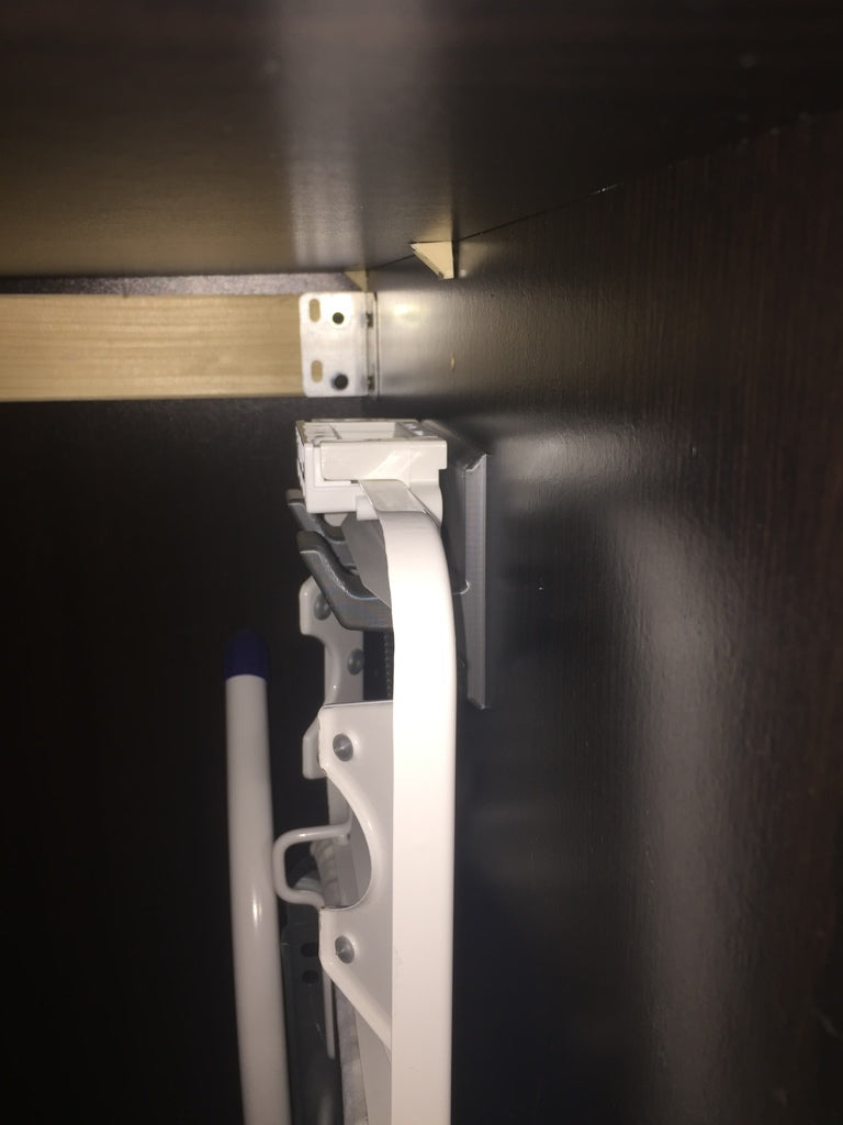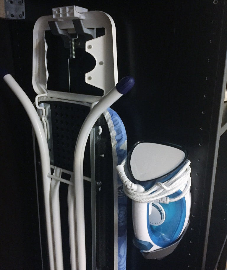 Questi supporti a parete sono progettati per riporre ferri da stiro e assi da stiro. Possono essere montati direttamente sulla parete della lavanderia o all'interno di un armadio Ikea Pax. Se non si desidera praticare fori nell'armadio, i fori delle viti nel supporto dell'asse da stiro corrispondono ai fori preforati per i ripiani dell'armadio. Il supporto per ferro da stiro è progettato per un Philips gc2040.