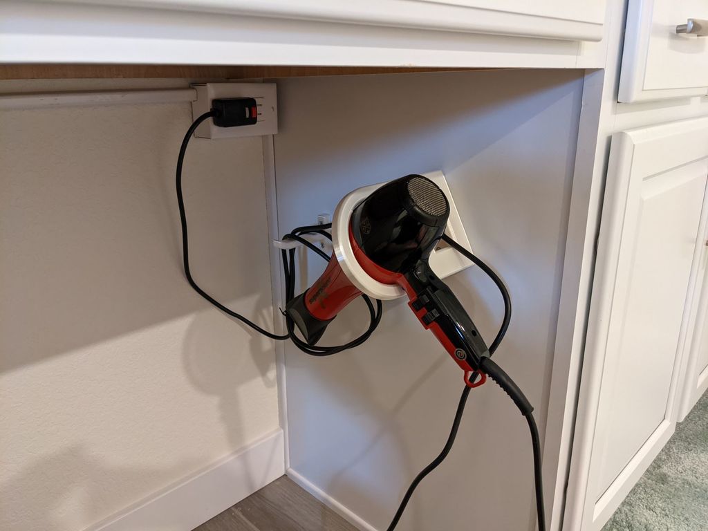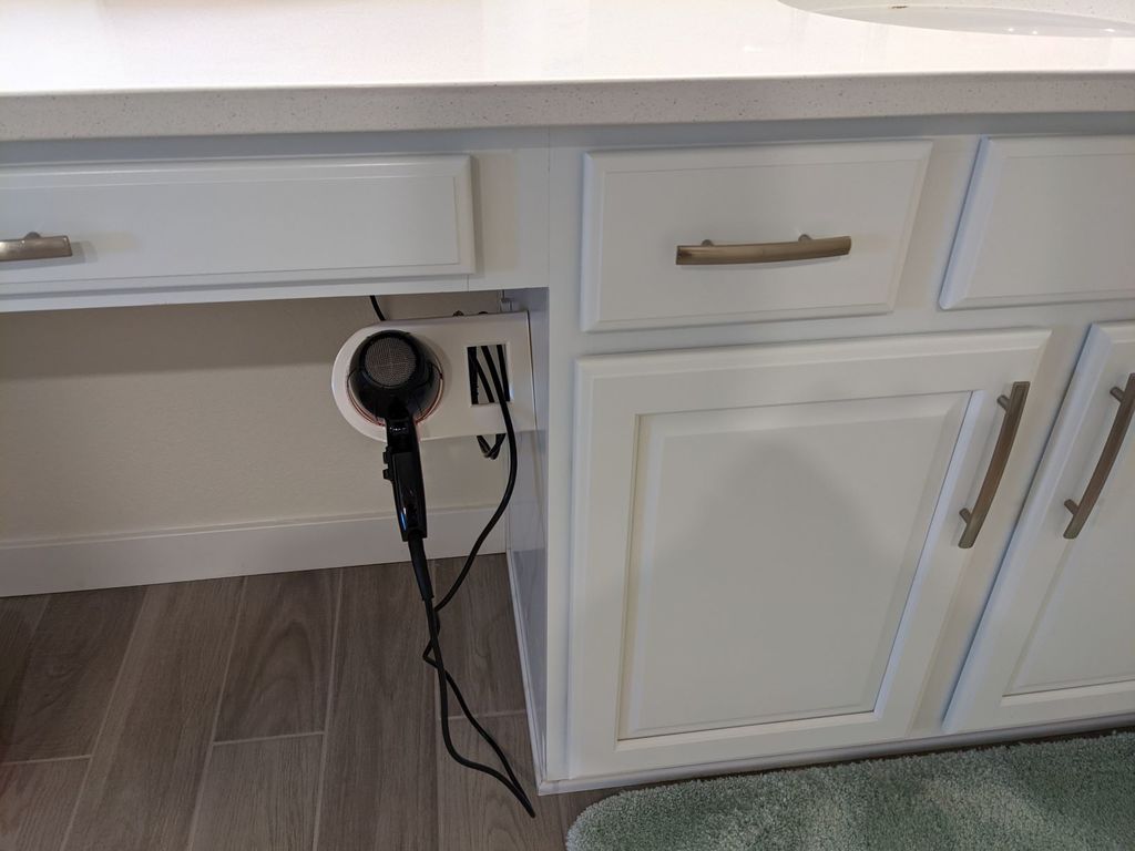 Questo pratico supporto per asciugacapelli è progettato per essere montato sul lato di un mobile da bagno. Offre una soluzione salvaspazio che aiuta a mantenere il bagno organizzato e senza ingombri, poiché l'asciugacapelli ha il suo posto fisso. Con un gancio per cavi integrato, il supporto funge anche da portacavi, assicurando che il cavo di alimentazione si adatti perfettamente dopo l'uso e riduca al minimo l'aggrovigliamento. Ciò offre uno stoccaggio facile e chiaro, in modo che l'asciugacapelli sia sempre a portata di mano quando ne hai bisogno.