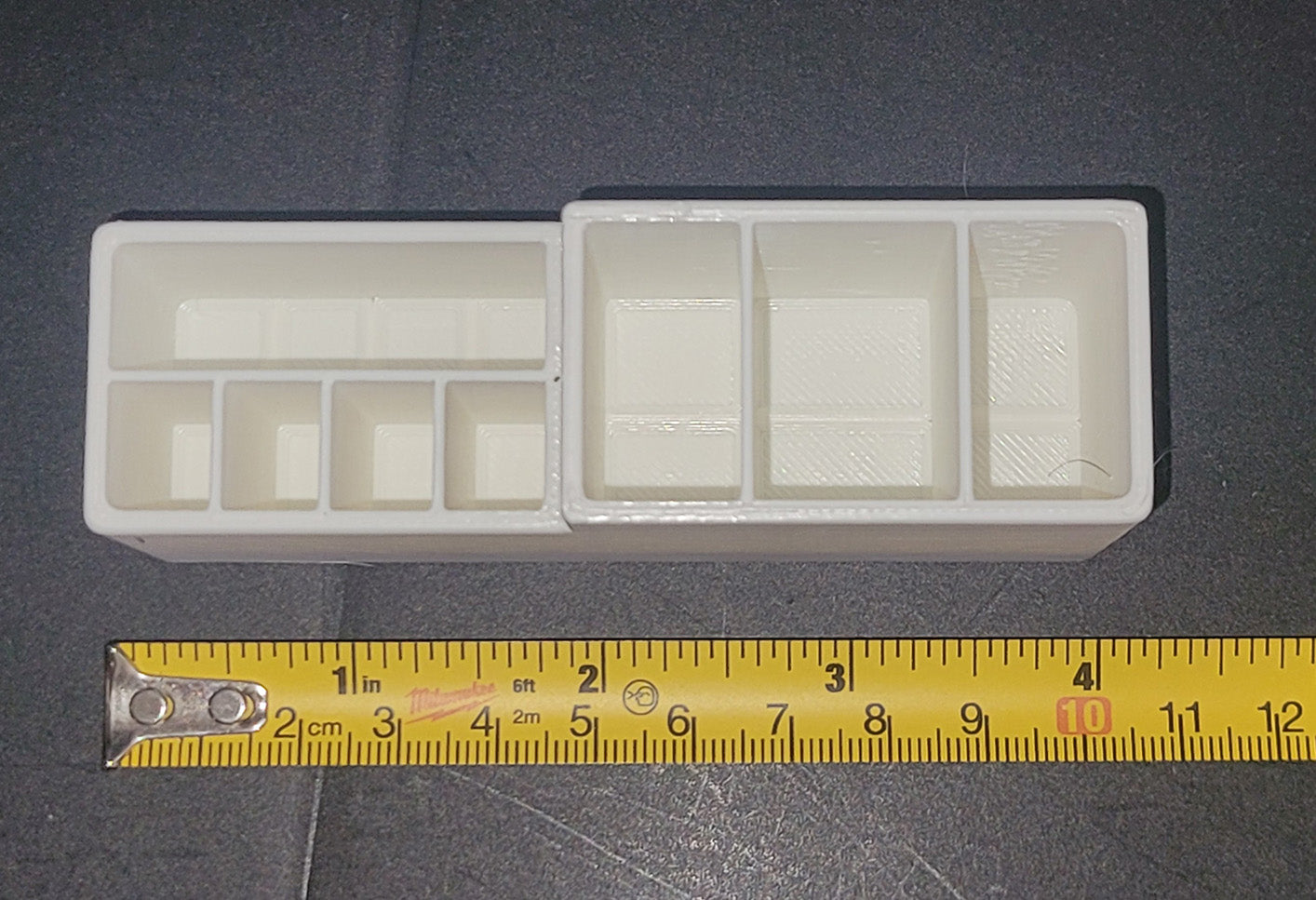 Questo pratico organizer è progettato per tenere insieme e organizzati filo interdentale e stuzzicadenti. Con le sue dimensioni compatte di 100 mm x 30 mm x 45 mm, è ideale per essere riposto discretamente nella maggior parte dei cassetti del bagno, sullo scaffale o nella tua borsa da toilette quando sei in viaggio. Questo elegante portafilo interdentale e stuzzicadenti assicura che tu abbia sempre facile accesso ai tuoi prodotti per la cura orale a portata di mano. Contribuisce a mantenere il tuo bagno ordinato e rende la tua igiene orale quotidiana più gestibile ed efficiente.