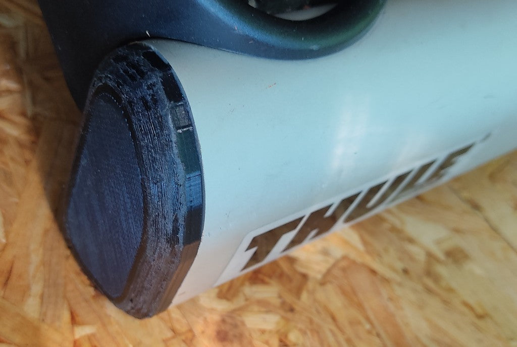 Cappuccio terminale sostituibile per portabiciclette per auto Thule Euroclassic G5 908/909 e 928/929. Questo cappuccio terminale è progettato per sostituire i cappucci terminali smarriti o rotti e garantisce una perfetta integrazione con il design e lo stile del rack. Si consiglia di utilizzare materiali PETG o ABS per garantire la durata, poiché il PLA potrebbe fondersi alla luce diretta del sole. L'installazione è semplice semplicemente specchiando il file .stl nello slicer sull'altro lato.