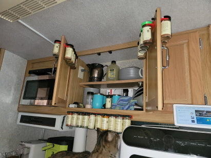 Il sistema è flessibile e può essere adattato ad altre marche di spezie regolando le dimensioni delle clip. Questo lo rende un contenitore per spezie salvaspazio ideale, particolarmente adatto per cucine più piccole, camper o altri luoghi in cui è importante l'uso ottimale dello spazio.