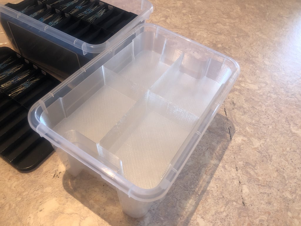 Questi sono inserti regolabili per le scatole IKEA Samla nelle dimensioni da 5 litri. Ti consentono di creare una rete regolabile all'interno delle scatole, in modo da poter organizzare meglio i tuoi oggetti. Sono divisibili a metà e a quarto, offrendo ulteriori opzioni di personalizzazione. Puoi anche incidere o imprimere etichette di livello per una migliore organizzazione. Sono ideali per un facile accesso e organizzazione di piccole parti e per creare un sistema che si adatti meglio alle tue esigenze.