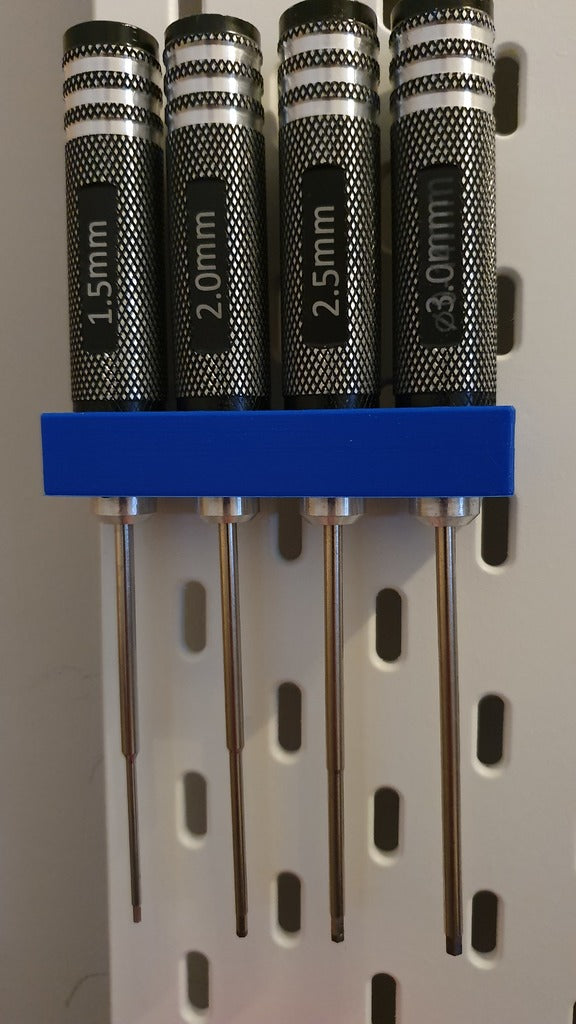 Porta cacciavite esagonali per Ikea Skadis. Questo supporto semplifica l'organizzazione della postazione di lavoro o dell'officina. È facile da montare direttamente su un pannello Skadis, rendendo il tuo posto di lavoro più organizzato e ordinato. Un'aggiunta pratica a qualsiasi officina o ufficio.