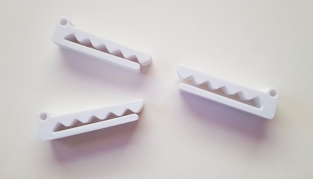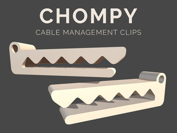 La versione 3 di Chompy è stata ottimizzata con un'apertura leggermente ampliata, che la rende particolarmente adatta alla gestione di cavi di dimensioni medie e standard. Ciò garantisce un facile e agevole inserimento e rimozione dei cavi secondo necessità. La clip può essere facilmente fissata con nastro biadesivo per una soluzione rapida e flessibile. Per chi desidera un montaggio più permanente, c'è anche la possibilità di modificare il design per l'uso con le viti.