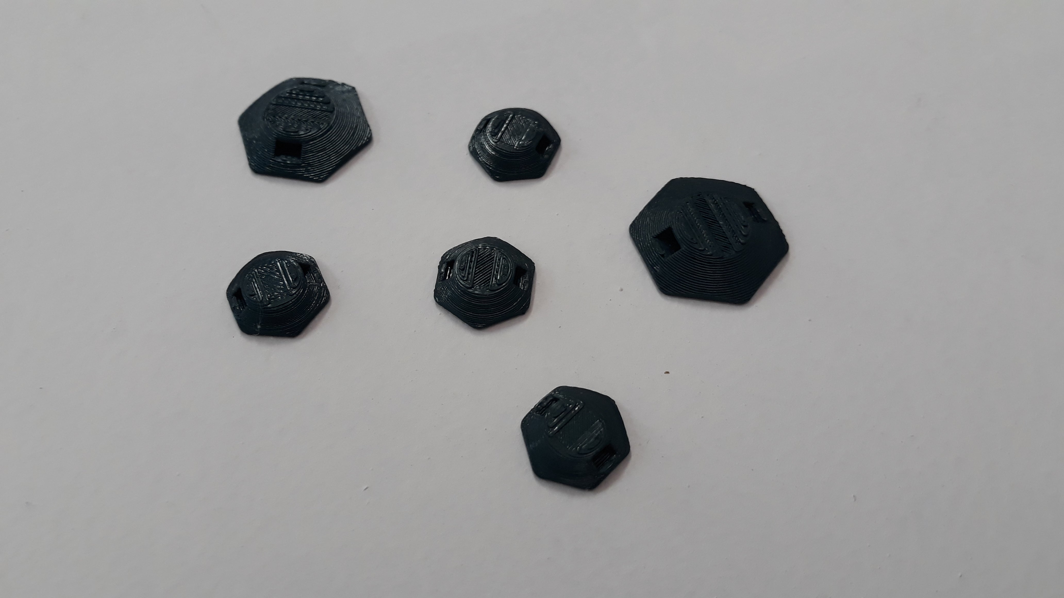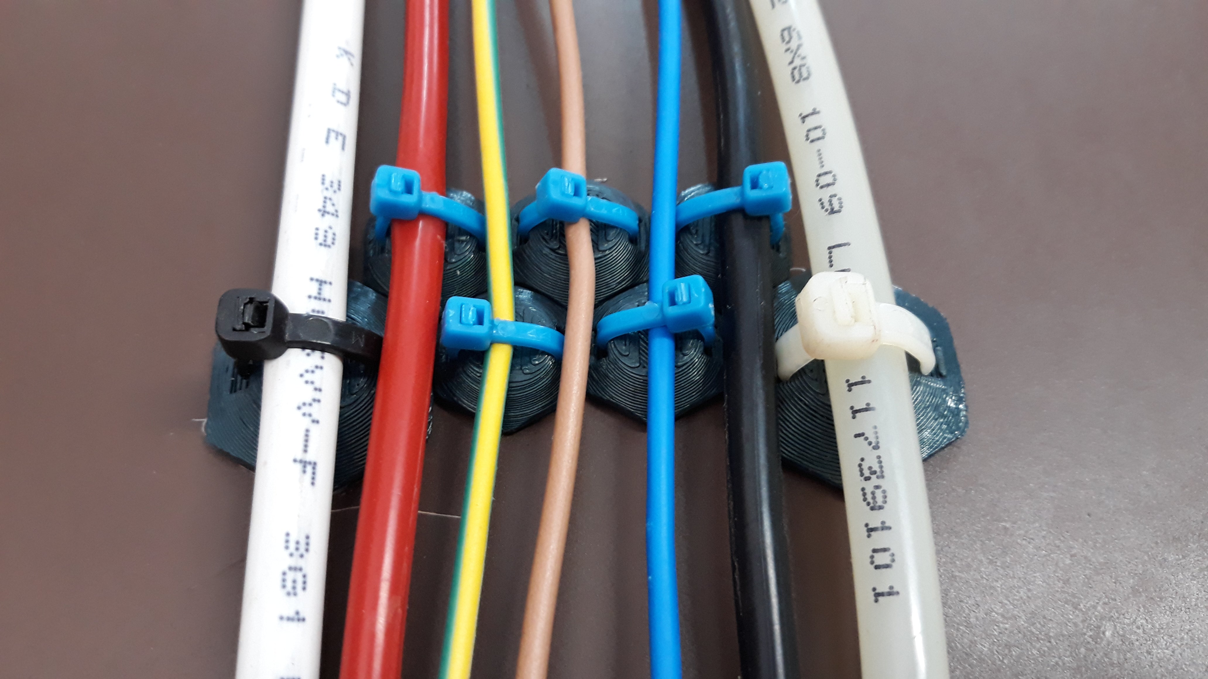 Clip esagonali per organizzare cavi e tubi. Le fascette possono essere inserite dall'alto o lateralmente e fissate con nastro biadesivo, colla, colla a caldo, ecc. Sono disponibili in due diverse misure (piccola e grande) e supportano fascette di diverse dimensioni. Possono essere stampati su qualsiasi materiale che soddisfi le vostre esigenze e possono essere stampati in molte unità contemporaneamente. Il prezzo per unità varia tra 0,1-0,2€/$ a seconda del materiale e delle dimensioni.