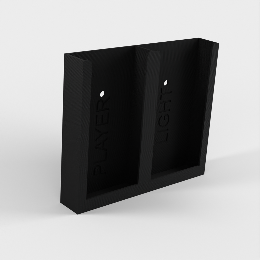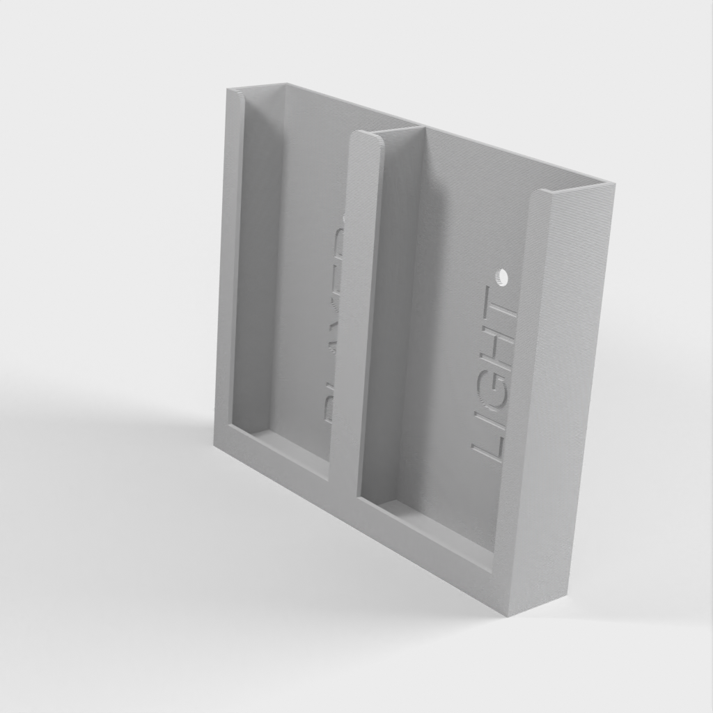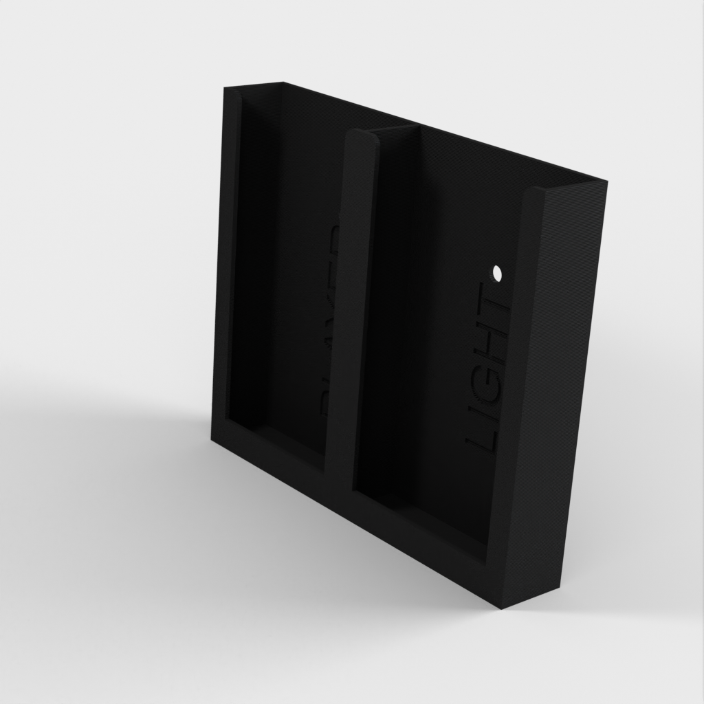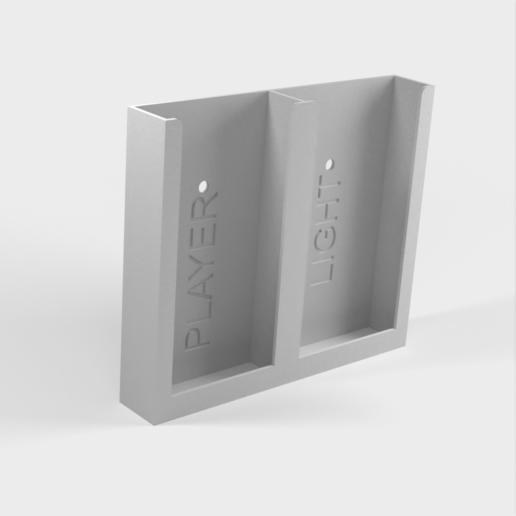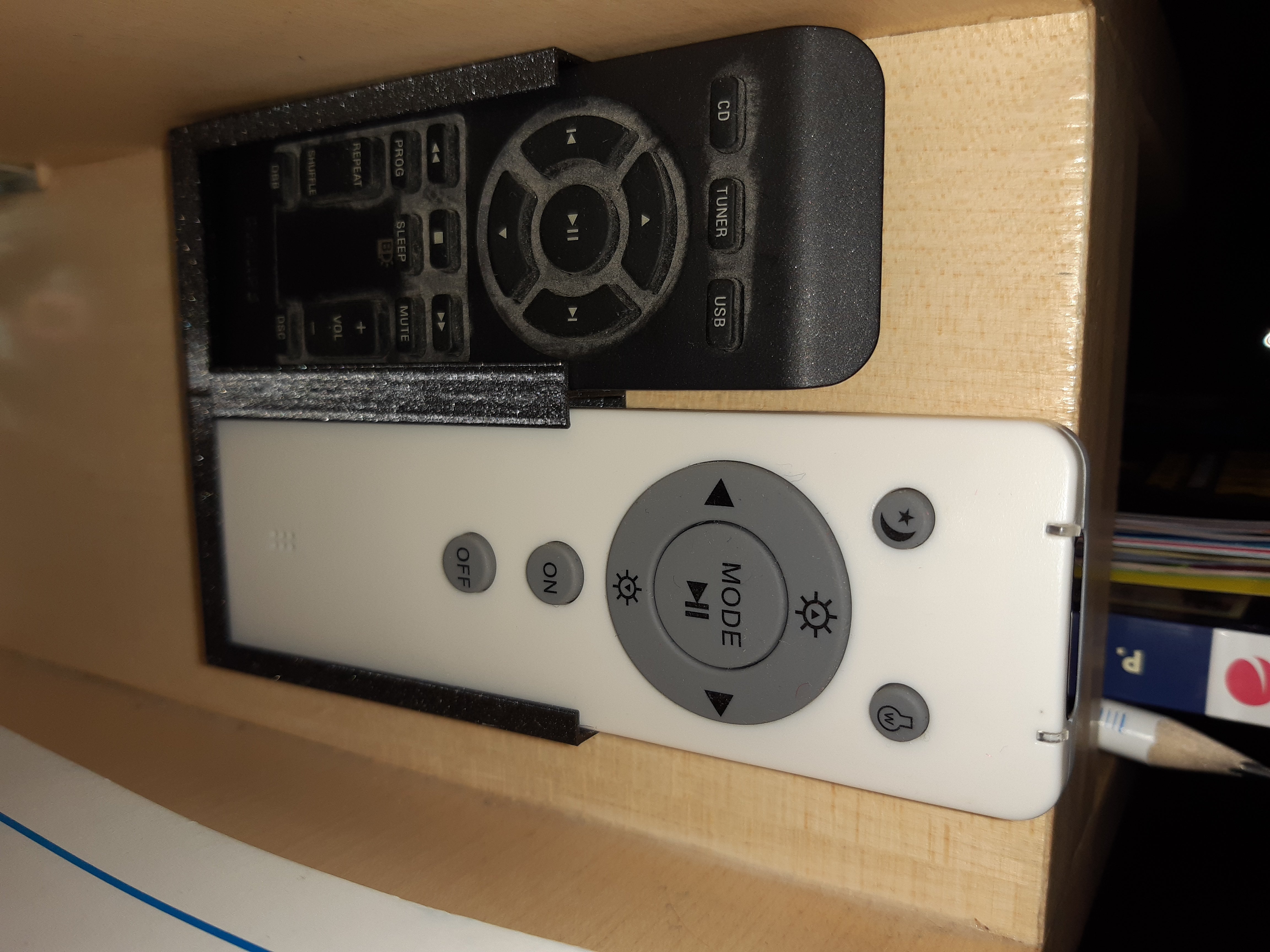 Si tratta di un semplice supporto che può contenere 2 telecomandi. Può essere installato sia in verticale che in orizzontale. Si può fissare con due viti o con nastro biadesivo, a seconda di come si adatta meglio alla vostra casa.