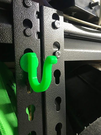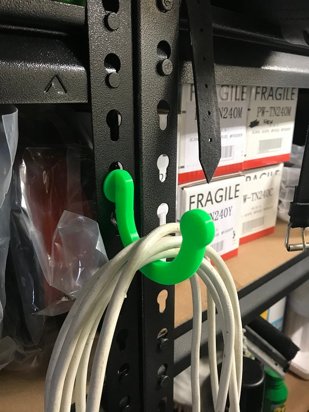 Questi ganci per cavi sono progettati per migliorare l'ordine e la funzionalità della tua configurazione di garage, officina o magazzino. Sono specificamente progettati per essere fissati a sistemi di scaffalature e scaffalature per pallet di tipo Keyhole, fornendo una soluzione versatile per la gestione dei cavi.