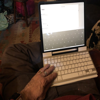 Questo supporto è progettato per trasformare il tuo iPad Pro in una vera e propria esperienza laptop. Supporta sia i modelli da 12,9" che gli iPad più piccoli e può essere utilizzato indipendentemente dal fatto che il dispositivo sia dotato o meno di una cover protettiva. Con questo supporto puoi facilmente posizionare il tuo iPad su un tavolo o sulle ginocchia e ottenere lo stesso comfort e produttività di un tradizionale laptop. È compatibile con una Apple Keyboard o tastiere simili, il che ottimizza il tuo flusso di lavoro. È incluso uno speciale adattatore che garantisce una presa stabile sul tuo iPad, anche quando è senza cover. Entrambe le configurazioni assicurano che lo schermo rimanga completamente libero e che la tua Apple Pencil sia facilmente accessibile.