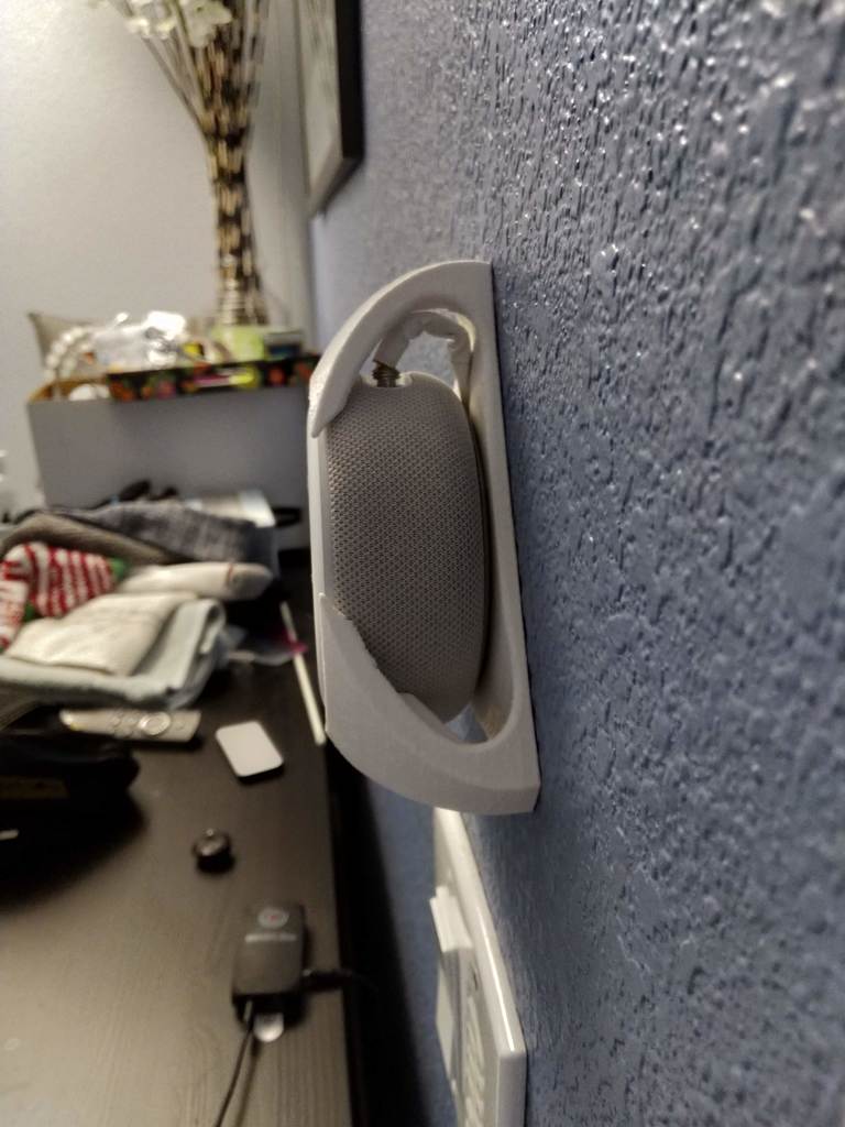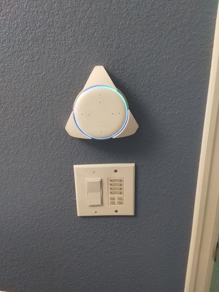 Il design include passaggi intelligenti e un terzo "braccio" che indirizza discretamente i cavi dietro il muro, creando un'installazione completamente invisibile. Inoltre, l'orientamento del supporto è adattato in modo che i pulsanti del volume sull'Echo Dot 3 siano facilmente accessibili e posizionati in modo intuitivo con il pulsante più in alto e il pulsante meno in basso. Tieni presente che questo supporto a parete richiede una spina cilindrica da 4 mm separata e un cablaggio personalizzato; non è compatibile con l'alimentatore originale di Echo Dot se desideri nascondere il cavo di alimentazione dietro il muro.