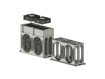 - Fås i varianter, der tillader placering af ventilatoren enten indeni eller uden på boksen.