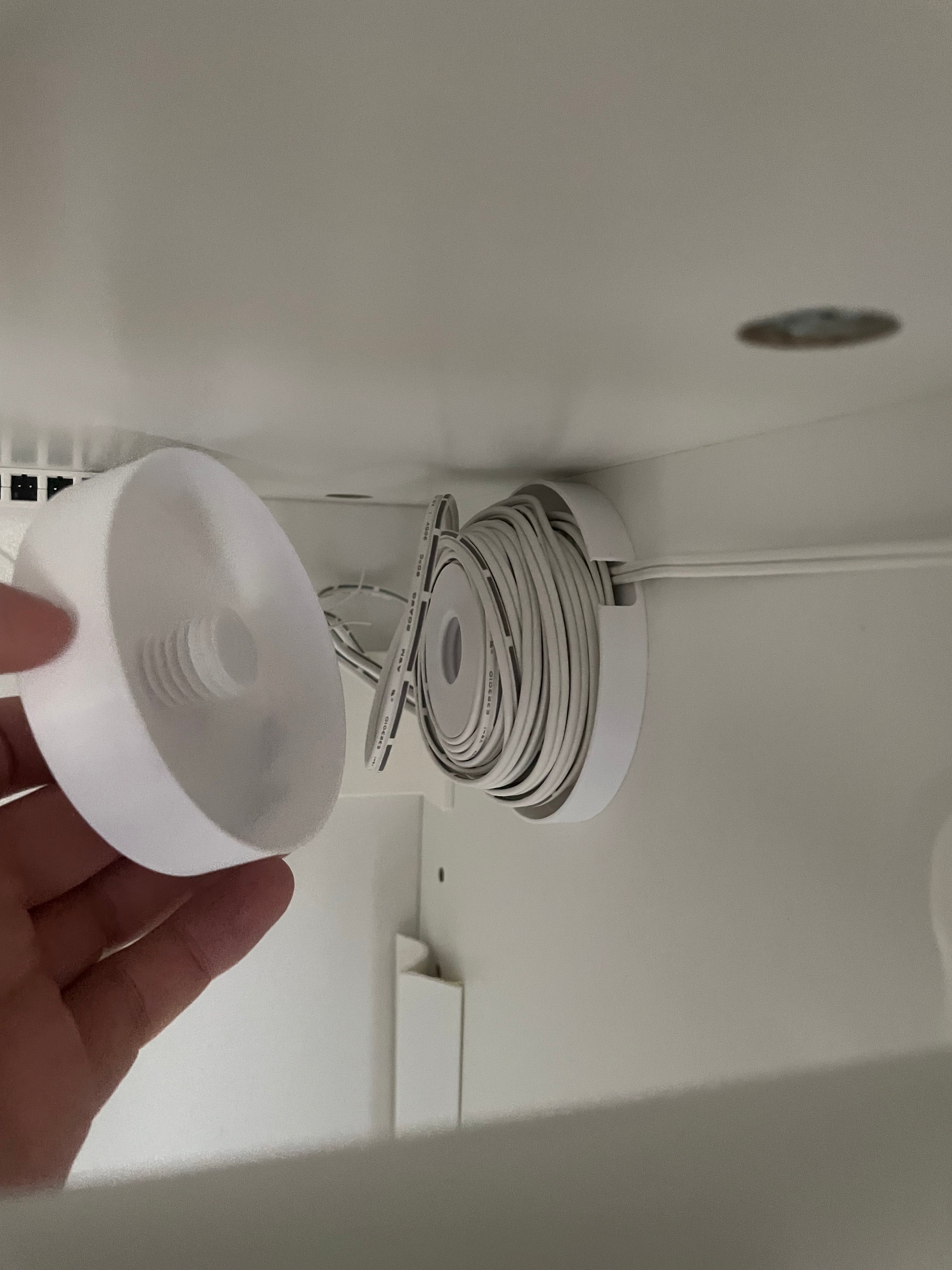 Il raccoglitore di cavi è stampato in PLA, ma può funzionare anche con qualsiasi altro tipo di materiale. Non richiede strutture di supporto.Specifiche