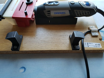 Questa pratica soluzione è stata sviluppata per organizzare in modo efficiente i cavi di alimentazione Dremel. Il prodotto, che funge da robusto portacavi, si fissa facilmente alle superfici in legno tramite viti. La sua funzione principale è quella di tenere in ordine i cavi di alimentazione e lontano dall'area di lavoro. Ciò contribuisce a un ambiente più ordinato e funzionale, dove i cavi non creano inutili disordine o ostacoli. Fornendo al cavo di alimentazione una posizione fissa, questo portacavi aiuta a prevenire l'aggrovigliamento e migliora la panoramica durante il lavoro.