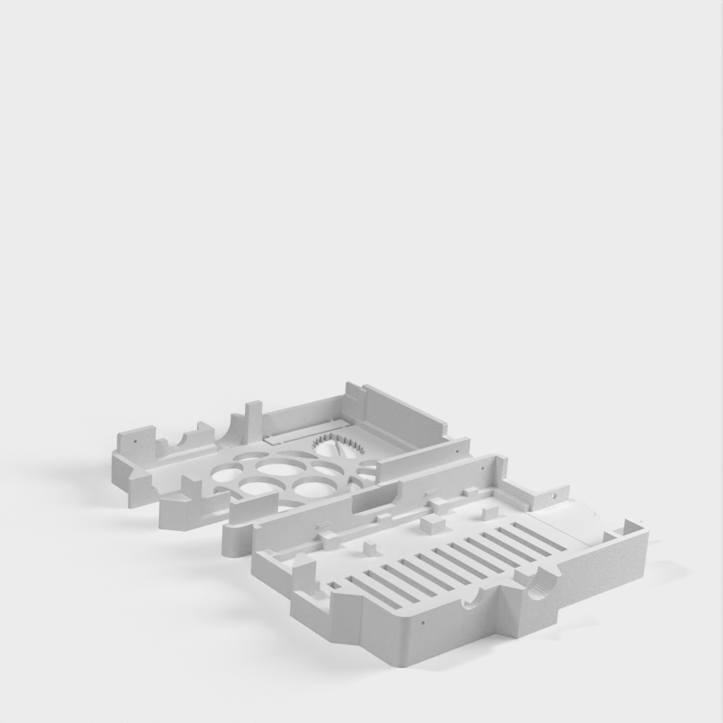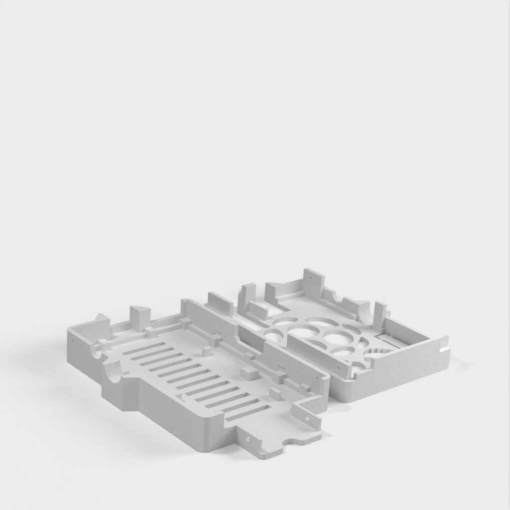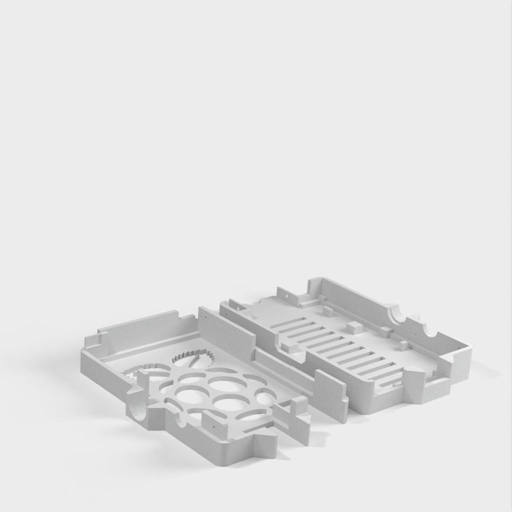 Un modo semplice per avvitare entrambe le metà su un'unica piastra. Questa piastra per raspberry PI è progettata per adattarsi a stampanti con un'area di costruzione di 7' x 7' x 3' o superiore.