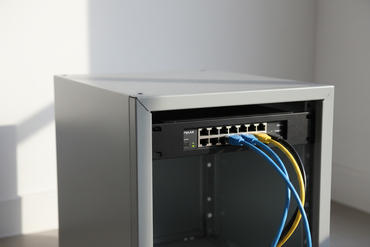 Il rackmount per Netgear GS308 è una soluzione ideale per montare il tuo switch Netgear in armadi di rete da 10 pollici. Questo rackmount è progettato per garantire un'installazione semplice e una posizione stabile dello switch, essenziale per mantenere un server room ben organizzato. Funzionale e robusto, ti consente di ottimizzare l'uso dello spazio nel tuo rack server e proteggere contemporaneamente le tue attrezzature da danni. Focalizzandosi su usabilità ed efficienza, questo rackmount è una scelta importante per qualsiasi rete professionale.