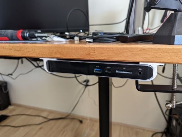 Robusto e facile da installare sotto la scrivania, questo supporto fissa l'hub e aiuta a eliminare l'ingombro dei cavi sulla tua postazione di lavoro.