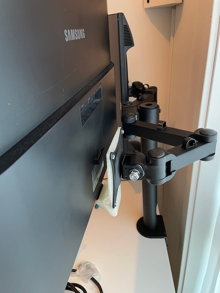 Questo supporto VESA è progettato specificamente per il monitor Samsung U28D590D, permettendoti di aggiornare la tua configurazione. Sostituendo il supporto originale per monitor Samsung del monitor con questo resistente supporto VESA, puoi montare facilmente il tuo schermo su un braccio per monitor o una staffa a parete compatibile. Questo non solo libera spazio prezioso sulla scrivania, ma offre anche maggiore flessibilità nel posizionamento del monitor, consentendoti di ottenere l'esperienza di lavoro o di gioco più ergonomica ed efficiente. L'installazione è semplice e richiede solo la rimozione del supporto da tavolo esistente e l'inserimento di questo adattatore per una soluzione sicura e stabile.