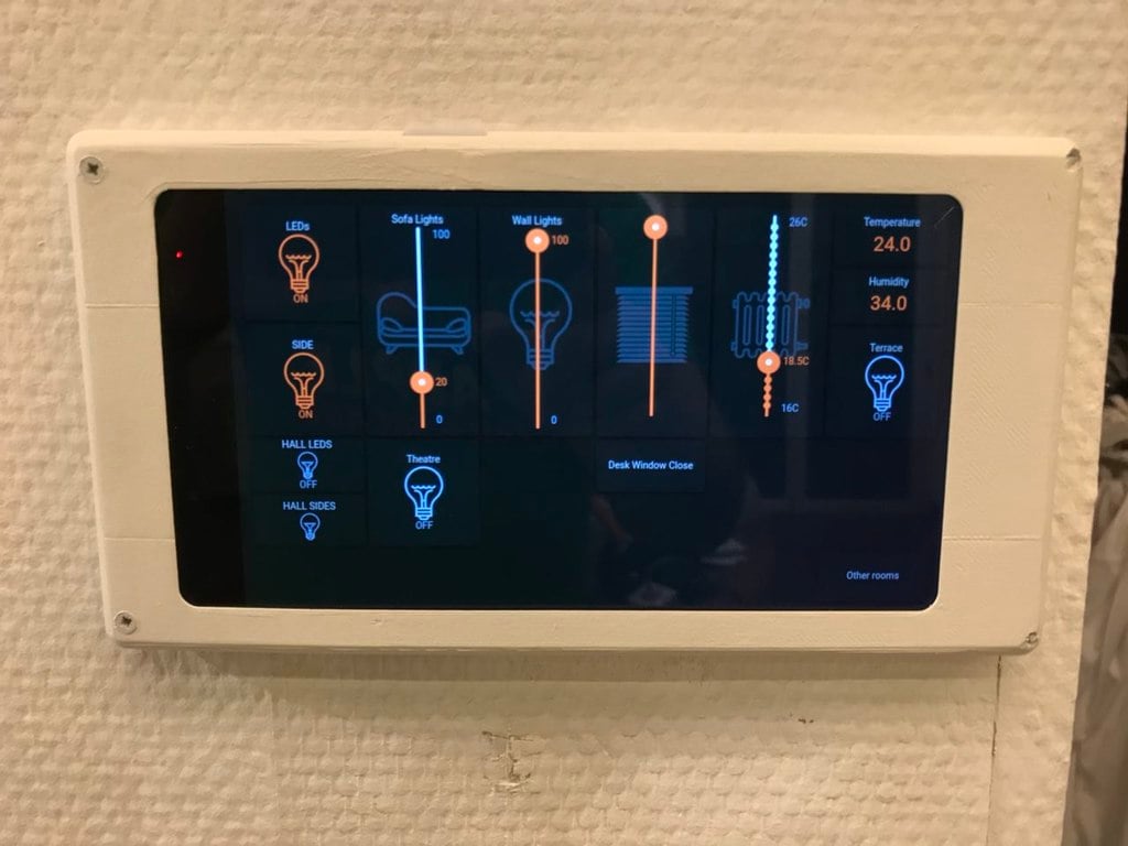 Questo supporto a parete è progettato per un tablet Lenovo Tab7 Essentials da 7", in particolare per il modello TB-7304F. Include spazio per un microUSB all'interno e consente di utilizzare il tablet come telecomando smart home. Il pulsante di accensione è facilmente raggiungibile nella parte superiore per eventuali riavvii o per riattivare il tablet.