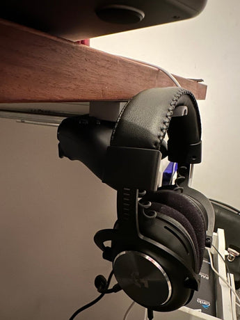 Questo pratico supporto è progettato per ottimizzare la tua configurazione di gioco fornendo un posto dedicato al tuo controller PS5 e alle tue cuffie da gioco. Può essere facilmente fissato alla tua scrivania, assicurando che la tua attrezzatura più importante sia sempre a portata di mano quando ne hai bisogno.