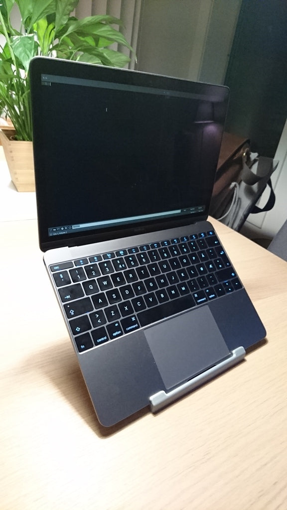 Questo elegante supporto per laptop è appositamente progettato per i modelli MacBook 12" del 2015 e 2016. È stato creato per migliorare la tua postura di lavoro sollevando lo schermo ad un'altezza più ottimale, il che può ridurre lo stress sul collo e sulle spalle.