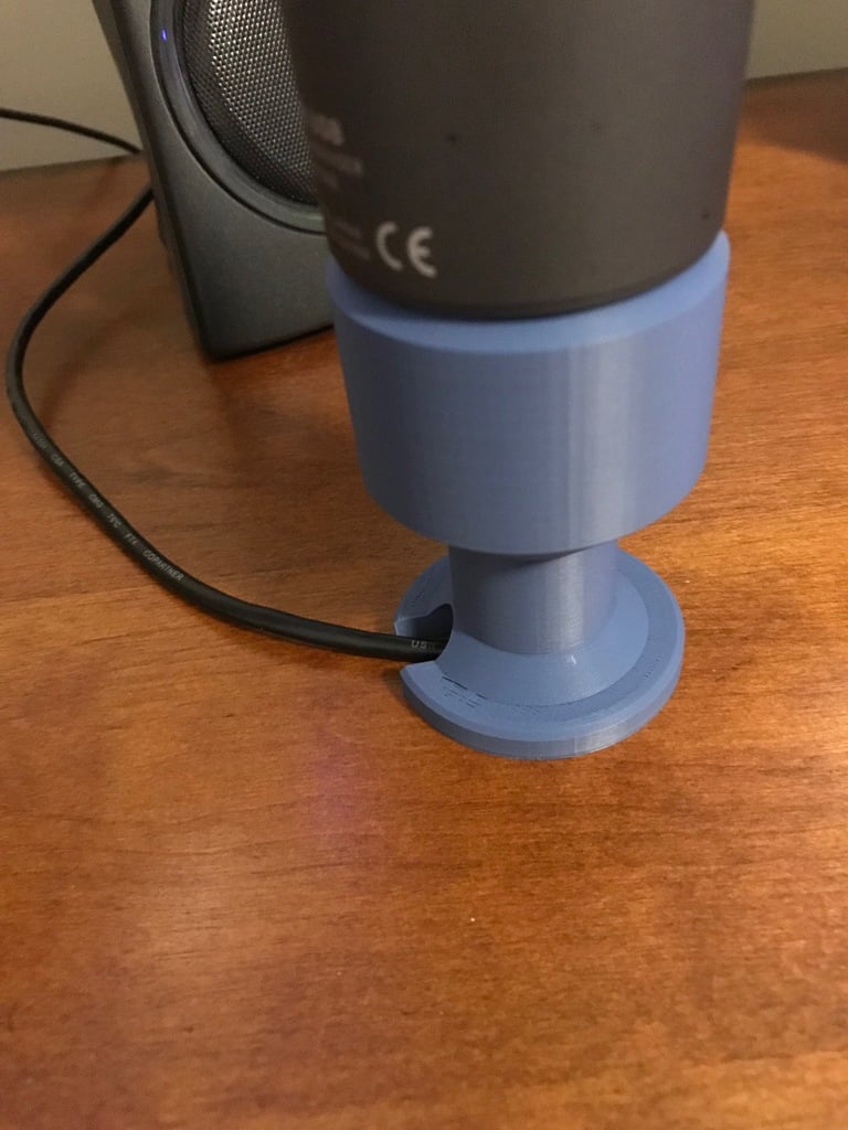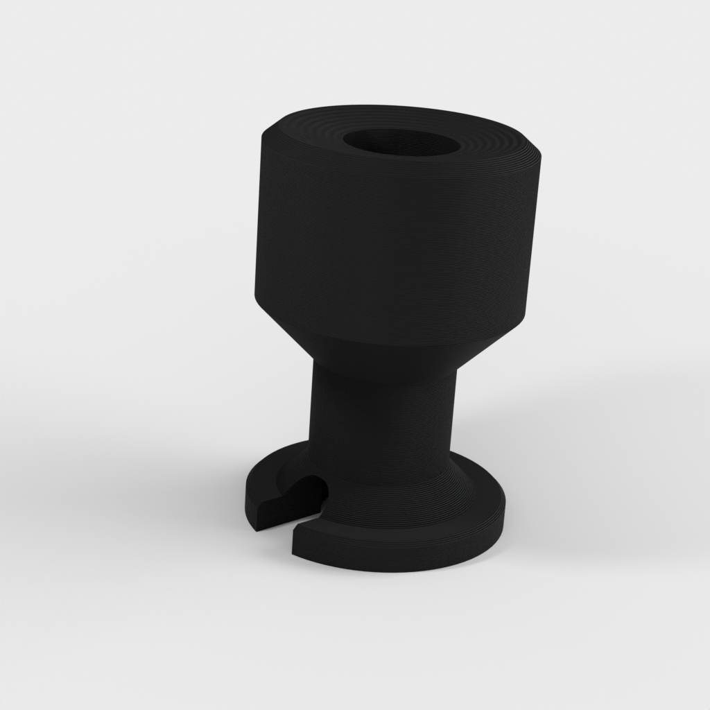 Semplice supporto per microfono AT2020. Si adatta perfettamente alla scrivania e può, ad es., essere posizionato fuori dalla vista degli schermi. Ha una punta angolata di 30° in modo che non si ribalti troppo facilmente.