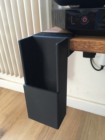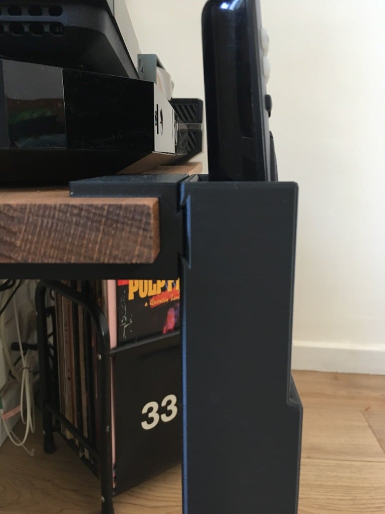 Questo porta telecomando è progettato per creare ordine e un facile accesso ai tuoi telecomandi. Si monta facilmente su un ripiano, assicurando che i tuoi telecomandi siano sempre a portata di mano e non scompaiano più tra i cuscini del divano. Il supporto è specificamente progettato per ripiani con uno spessore di 19 mm, garantendo un montaggio stabile e corretto. Con questa pratica soluzione, puoi mantenere un'area multimediale ordinata e organizzata.