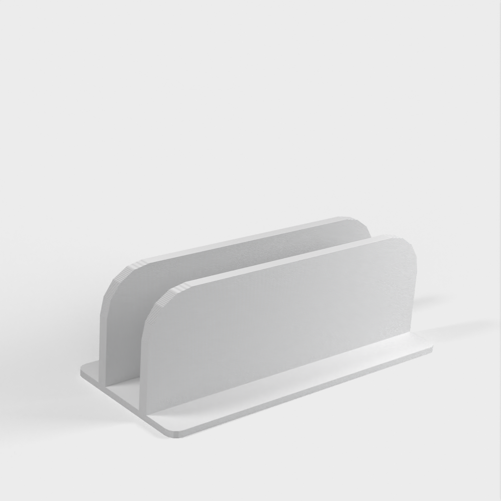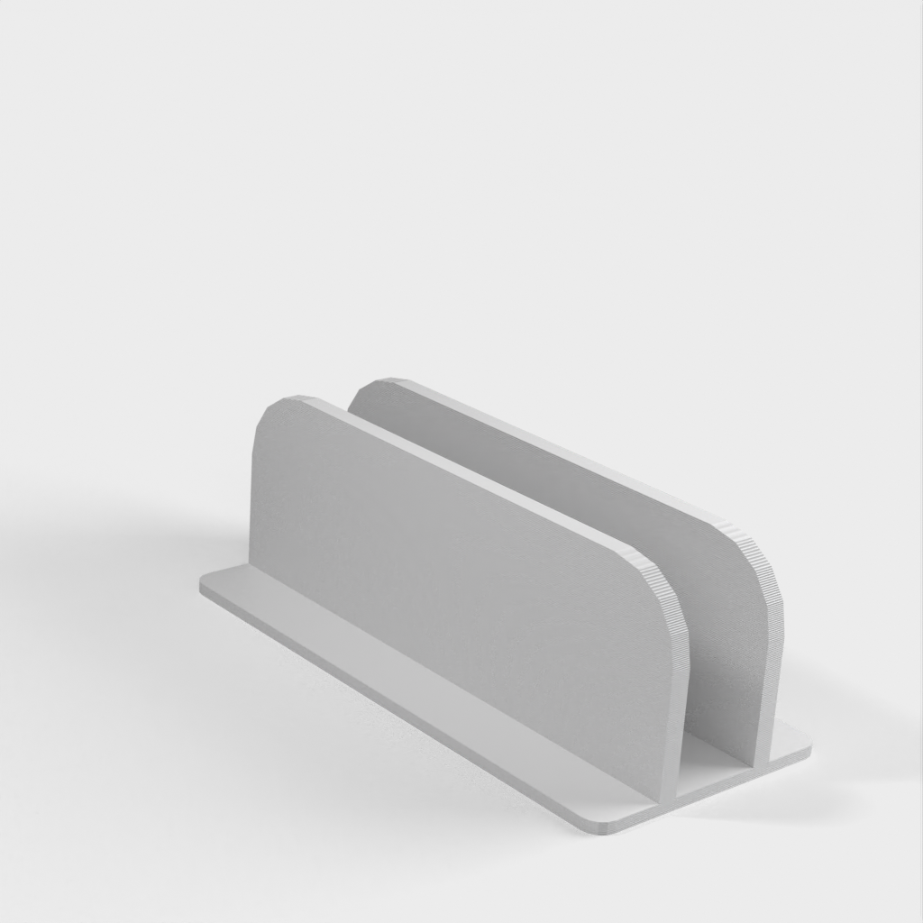 Si tratta di un supporto verticale per MacBook Pro 14'. Il supporto tiene in posizione il MacBook in modo che possa essere posizionato sulla scrivania senza occupare molto spazio. Ho incollato dei feltrini all'interno del supporto per garantire una perfetta aderenza e per evitare graffi al MacBook. Si noti che il supporto è leggermente più largo del MacBook.