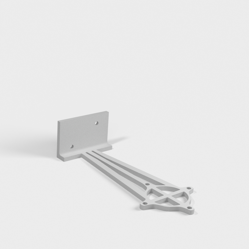 Per montare la staffa, utilizzare dadi e bulloni M4 per fissarla al supporto Unifi esistente. Successivamente, l'intera configurazione può essere facilmente fissata alla parete utilizzando viti per legno o simili. Si consiglia di utilizzare materiale PETG per questa staffa, poiché i punti di accesso Unifi possono generare calore. Il PETG è un materiale robusto che resiste alla deformazione alle alte temperature, garantendo una soluzione stabile e durevole per la configurazione della rete.
