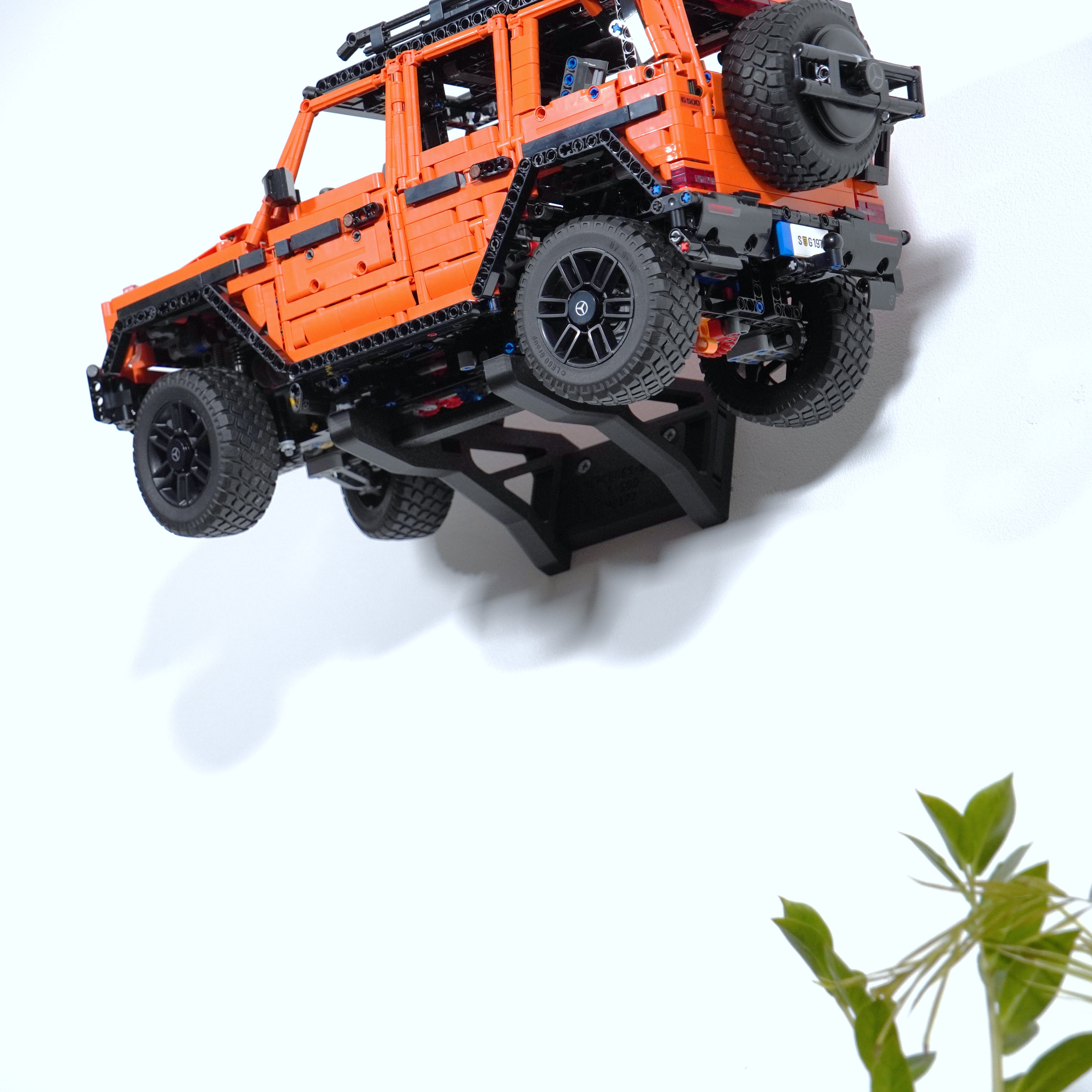 Questa staffa da parete è progettata specificamente per la LEGO 42177 Mercedes G 500. Offre opzioni di esposizione flessibili, consentendo di montare il modello piatto contro la parete o inclinato lateralmente. La staffa assicura che il veicolo rimanga stabile, pur consentendo di rimuoverlo facilmente quando necessario.