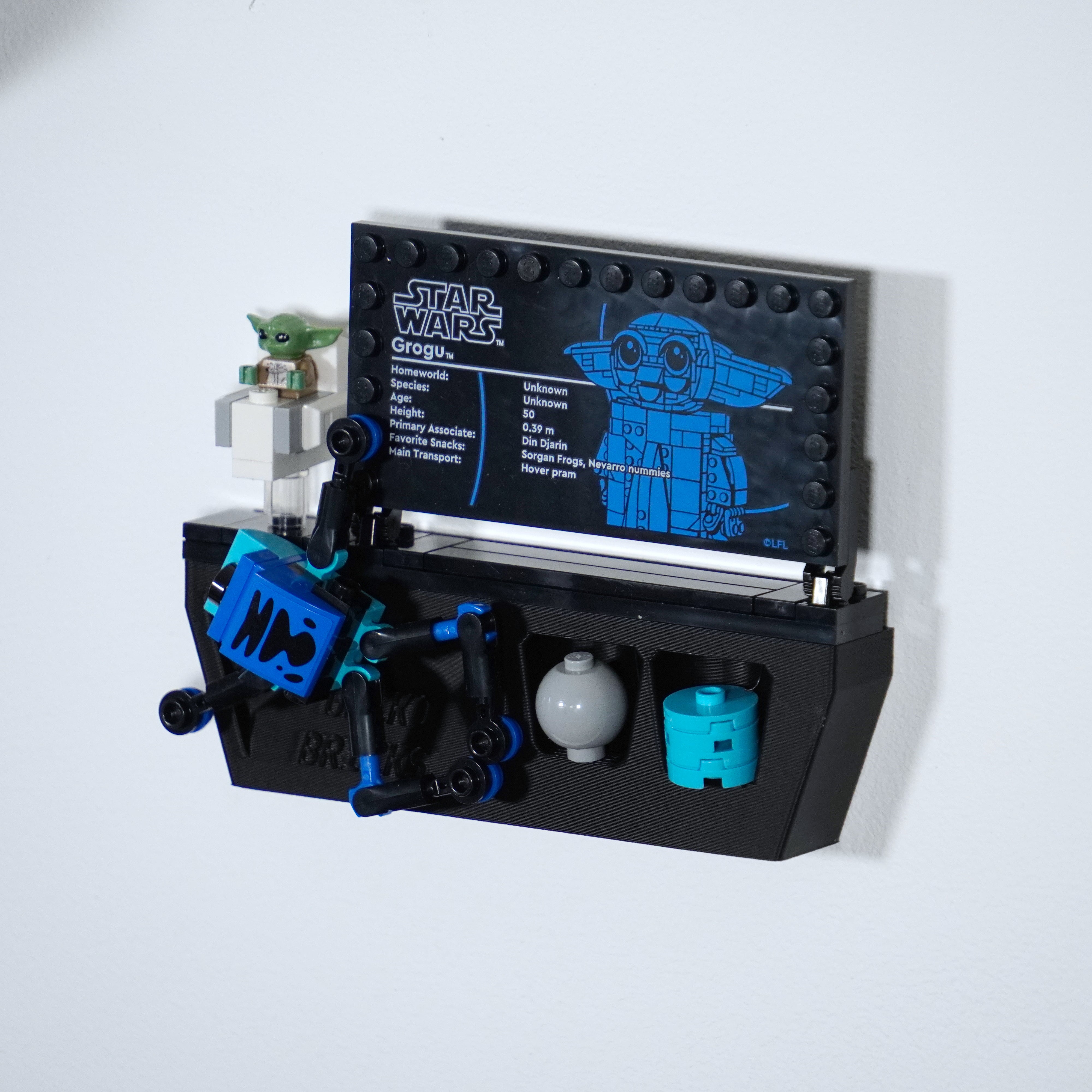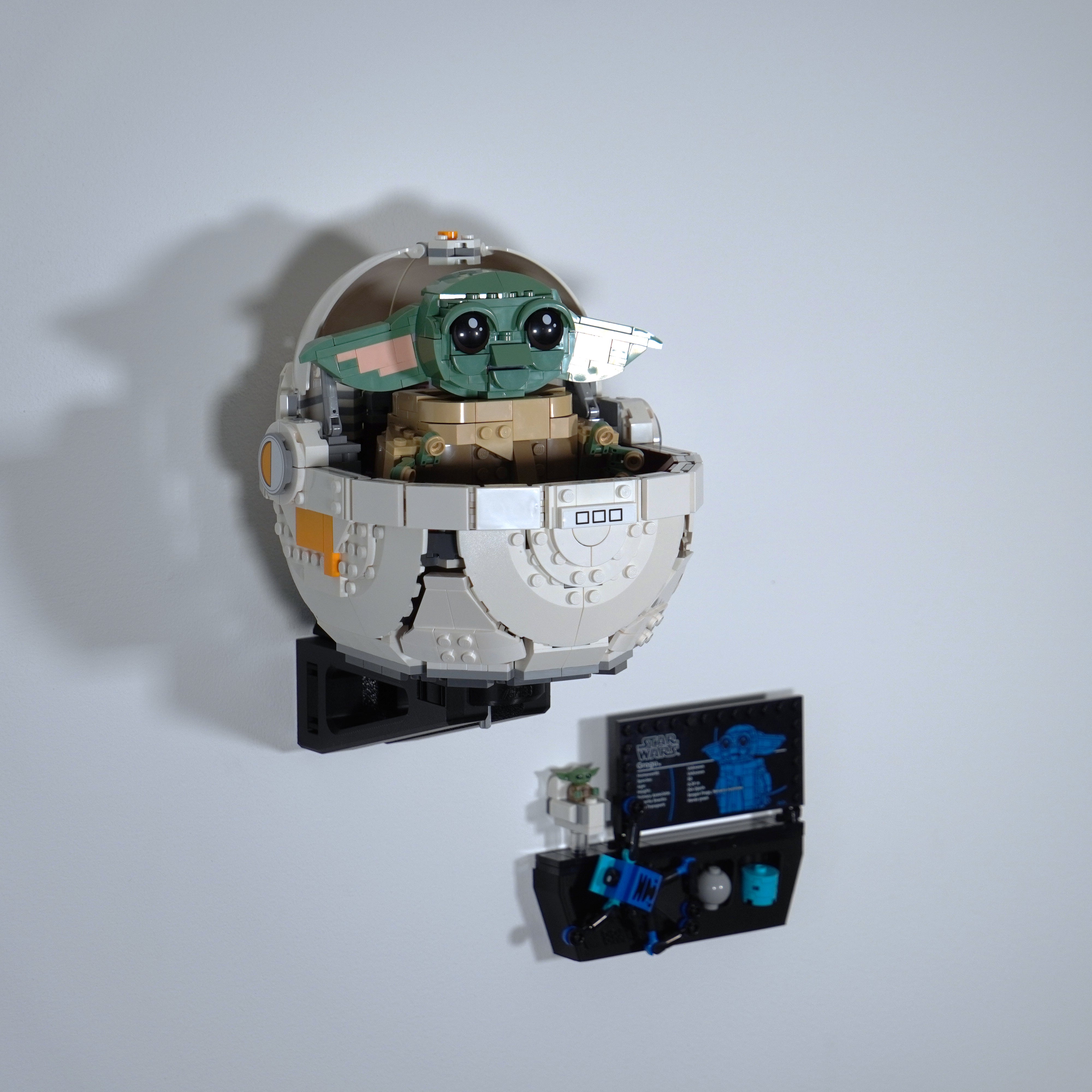 Tieni in ordine la tua collezione con questo supporto da parete progettato specificamente per il set LEGO Star Wars con Grogu. La staffa si monta facilmente con una singola vite e assicura che il modello rimanga stabile. C'è anche spazio per la targa informativa e gli accessori, in modo che tutto sia tenuto insieme in un unico posto.