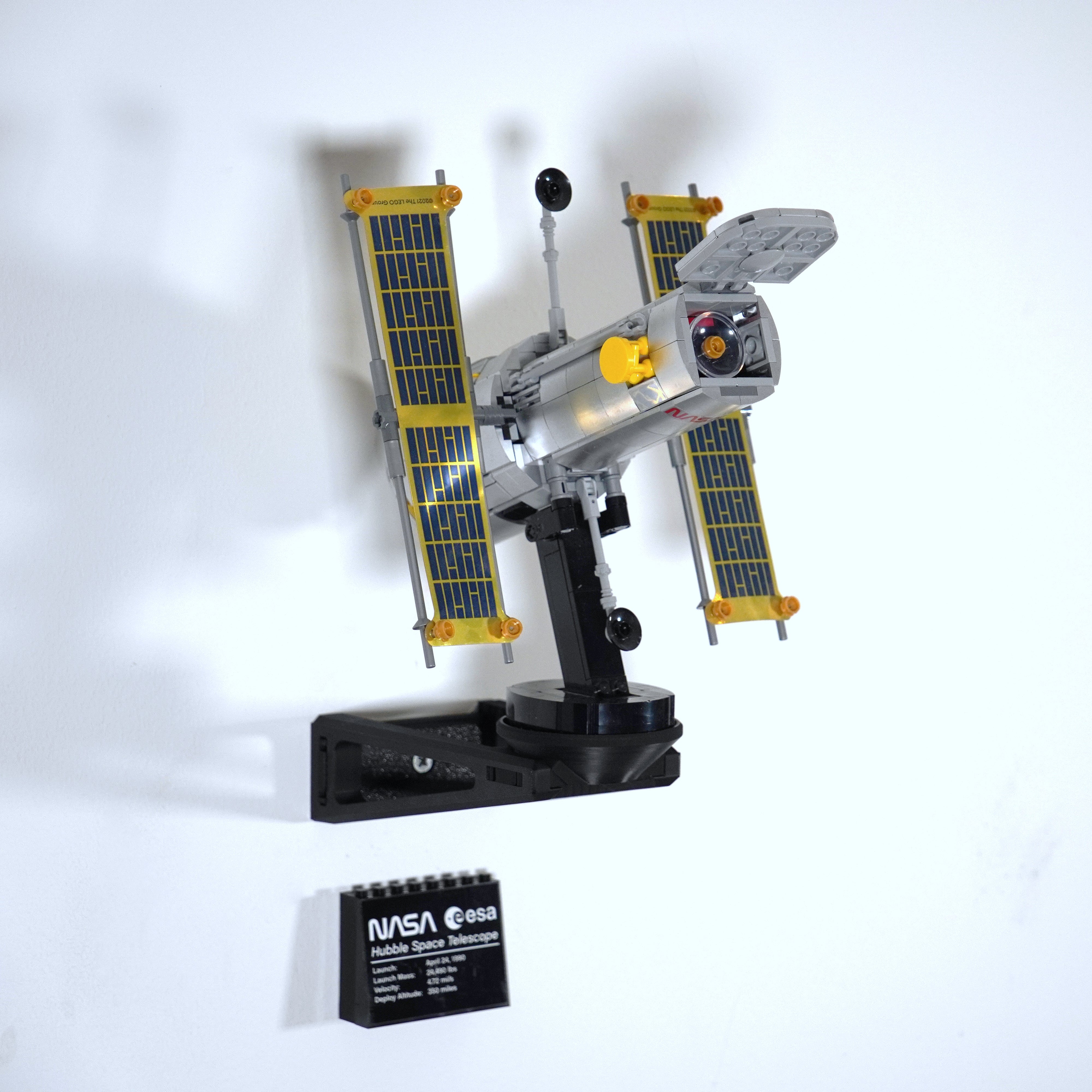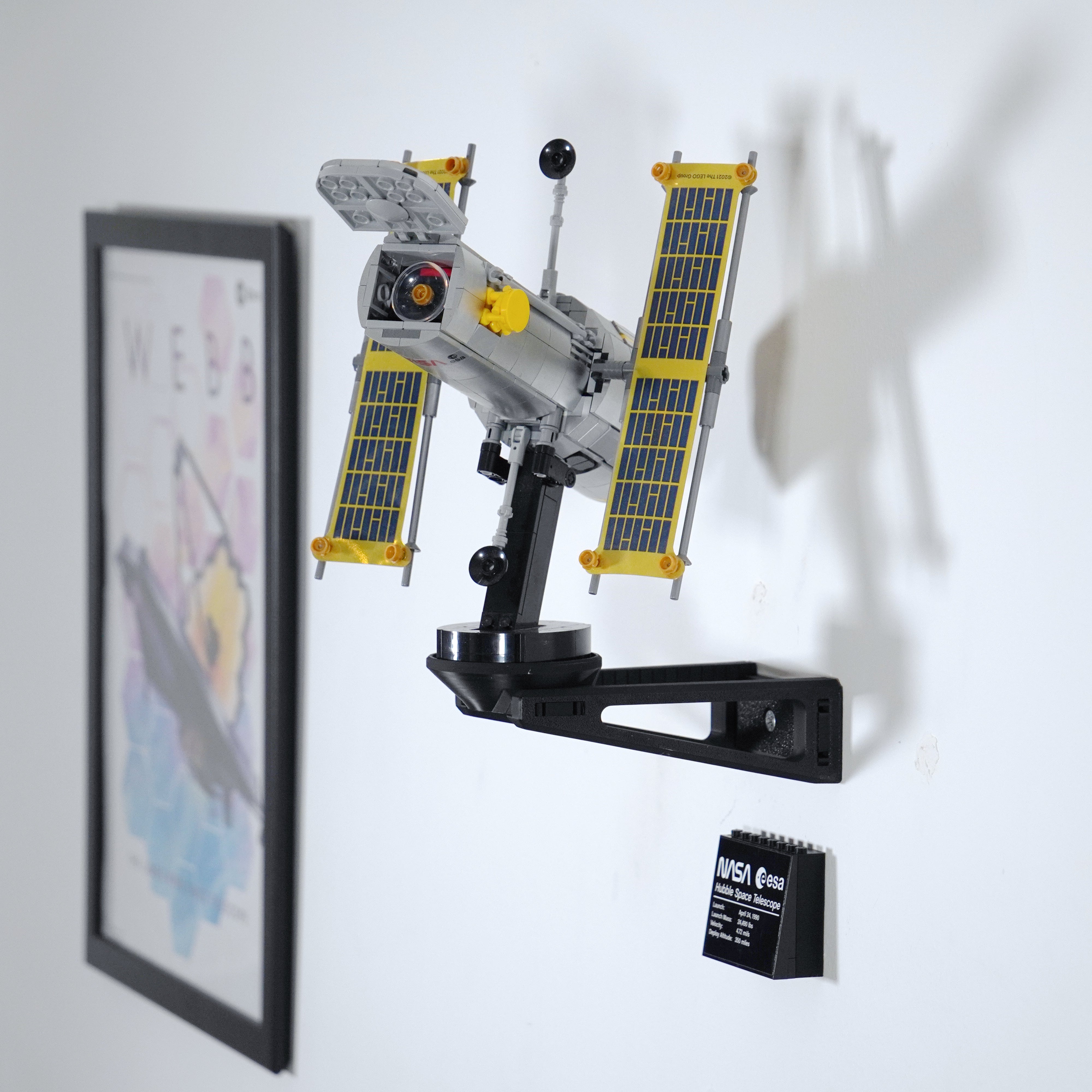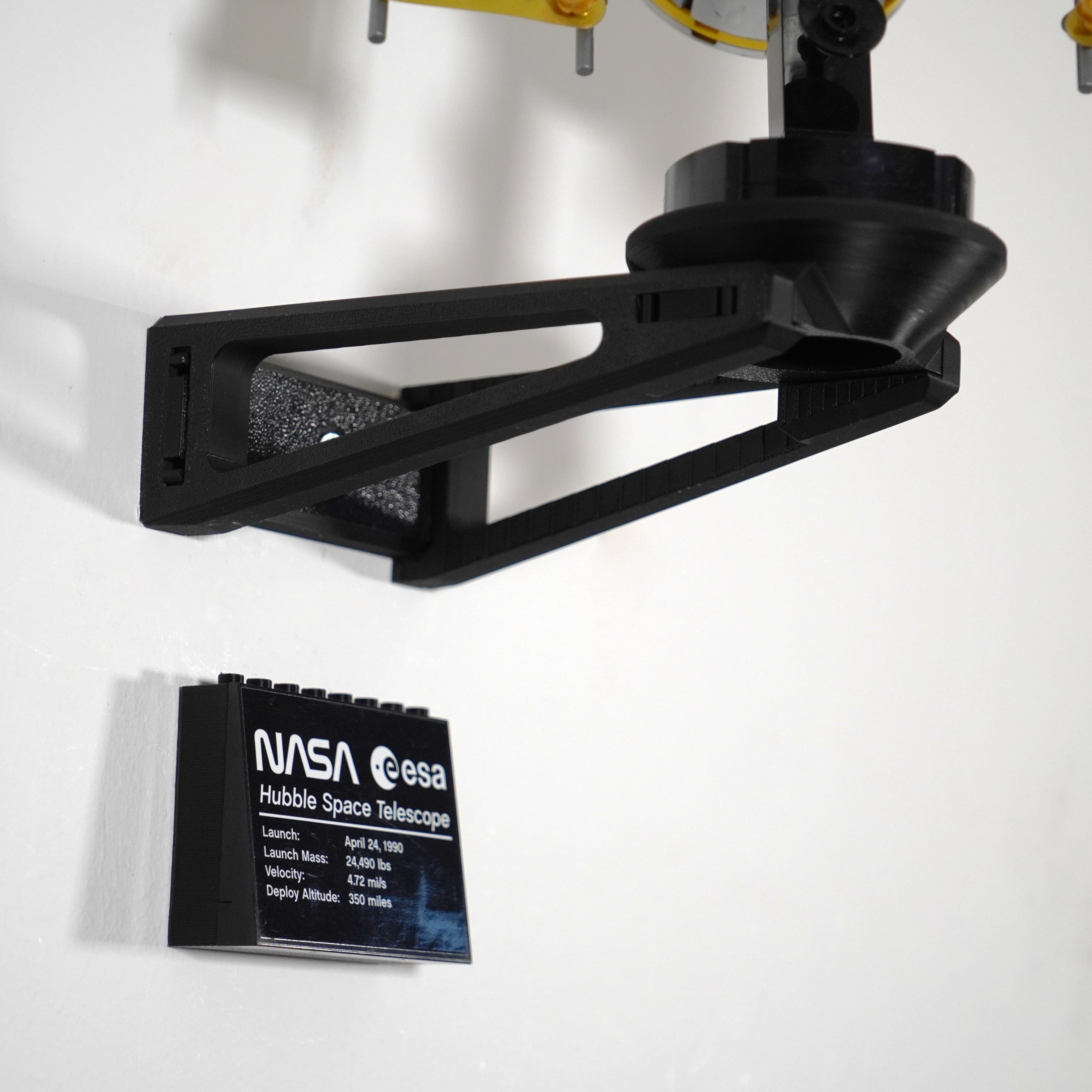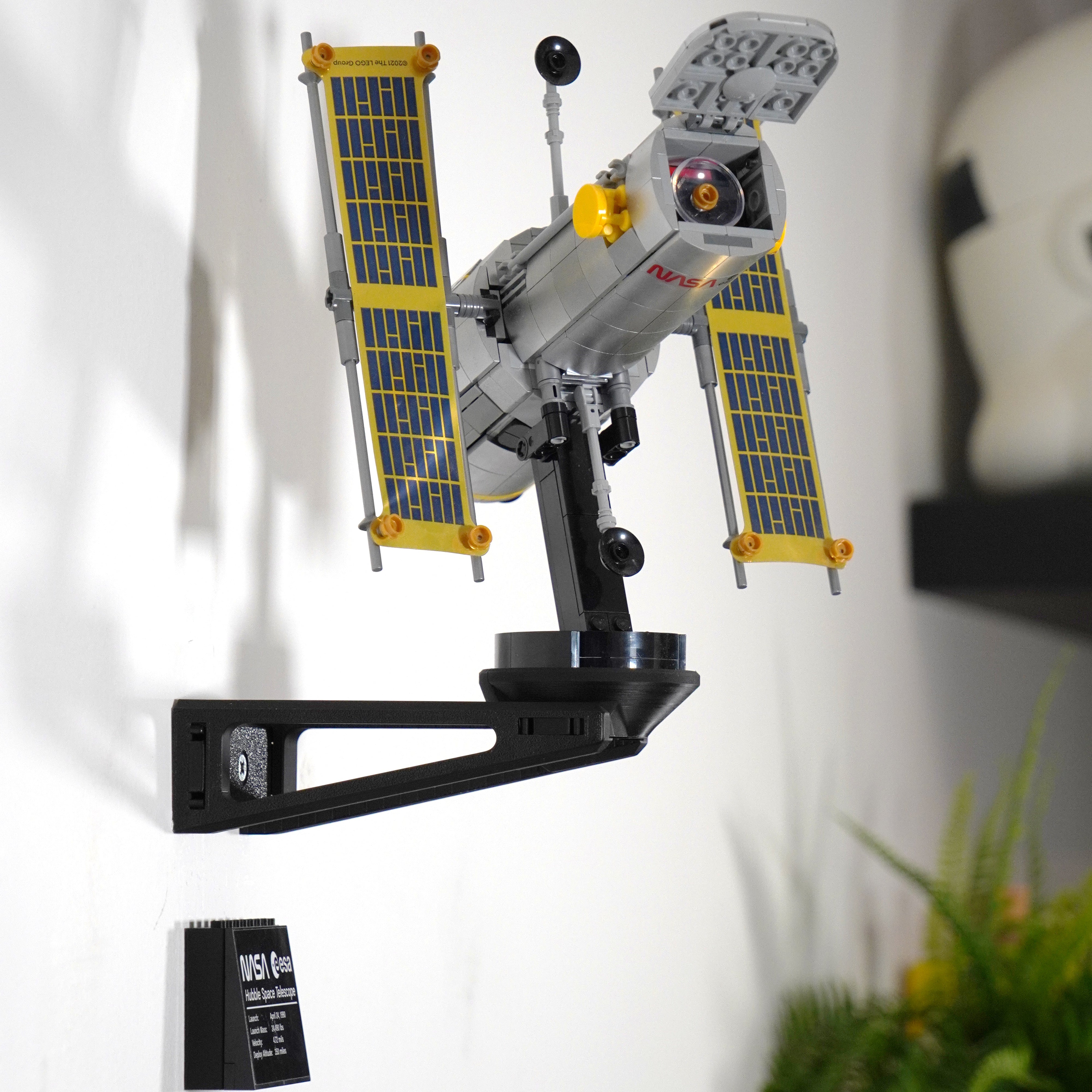 Esponga il tuo telescopio spaziale Lego Hubble in modo sicuro con questo supporto a parete. È progettato per sostenere il supporto originale e consente di ruotare il telescopio all'angolazione desiderata. La soluzione richiede un solo fissaggio a parete, rendendo facile presentare magnificamente il modello a casa.