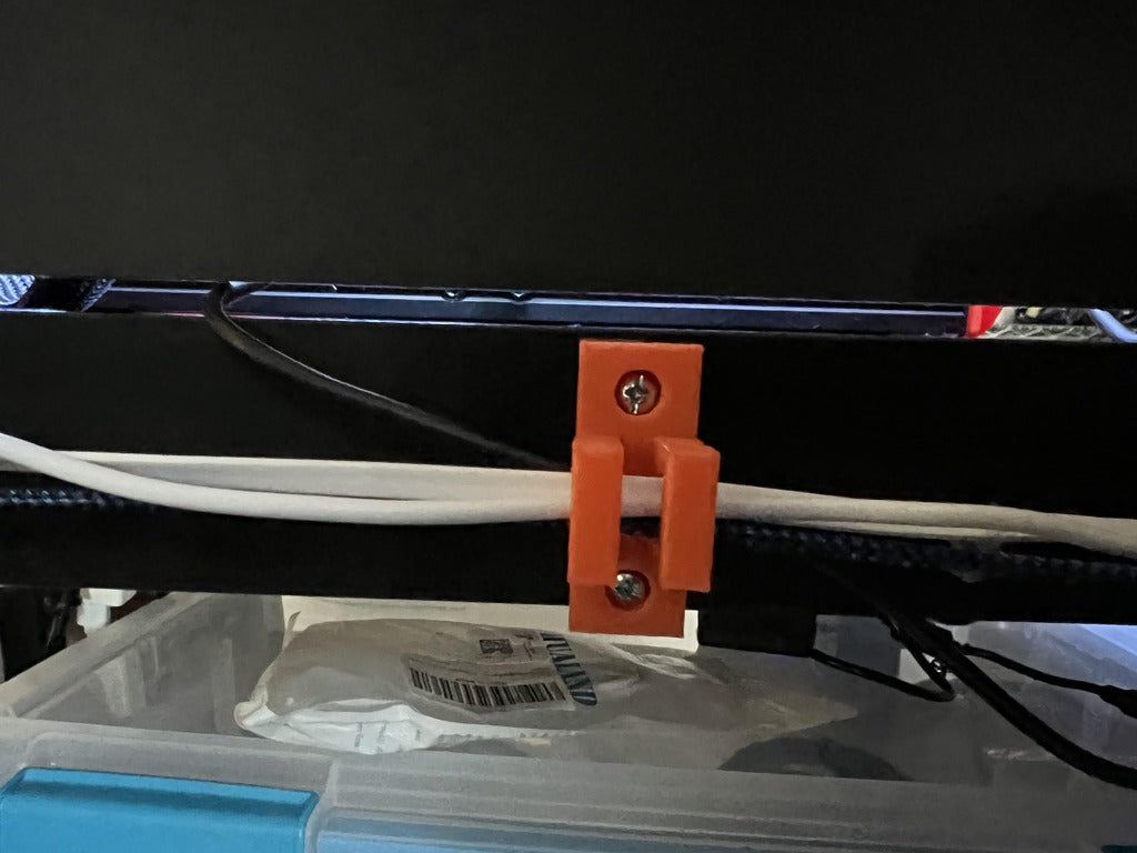 Questa è una clip per la gestione dei cavi, adatta al lato di un piano di lavoro o di una gamba di IKEA LACK. Aiuta a tenere in ordine i cavi e a ridurne l'ingombro nello spazio di lavoro.
