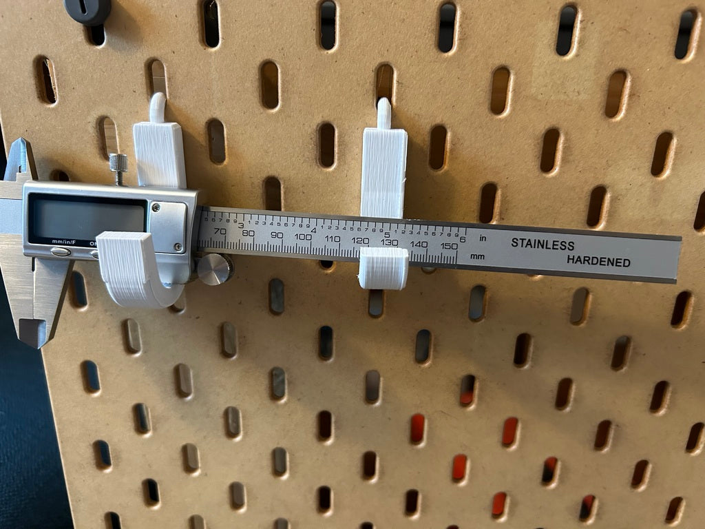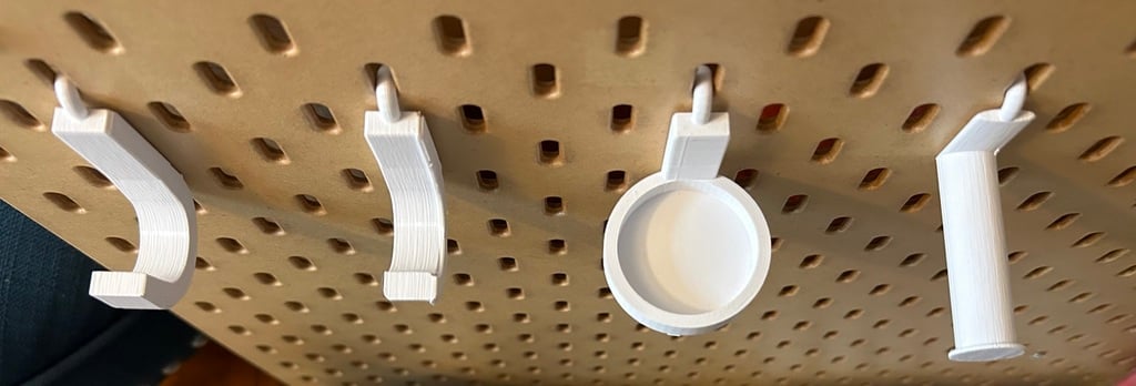 Questa è una collezione di chiodini appositamente progettati per la bacheca IKEA SKÅDIS. Ogni molletta è progettata per adattarsi a utensili e oggetti di dimensioni diverse. Le mollette comprendono un gancio più lungo per oggetti più larghi, un porta bobina o nastro adesivo e uno speciale rotondo che può essere utilizzato per appendere una pistola termica. Inoltre, è disponibile separatamente anche la base del gancio, che può essere personalizzata in base alle esigenze specifiche. Ogni gancio e supporto è progettato per adattarsi perfettamente ai fori della bacheca IKEA SKÅDIS, che misurano circa 6 mm e sono posti a 34 mm di distanza l'uno dall'altro.