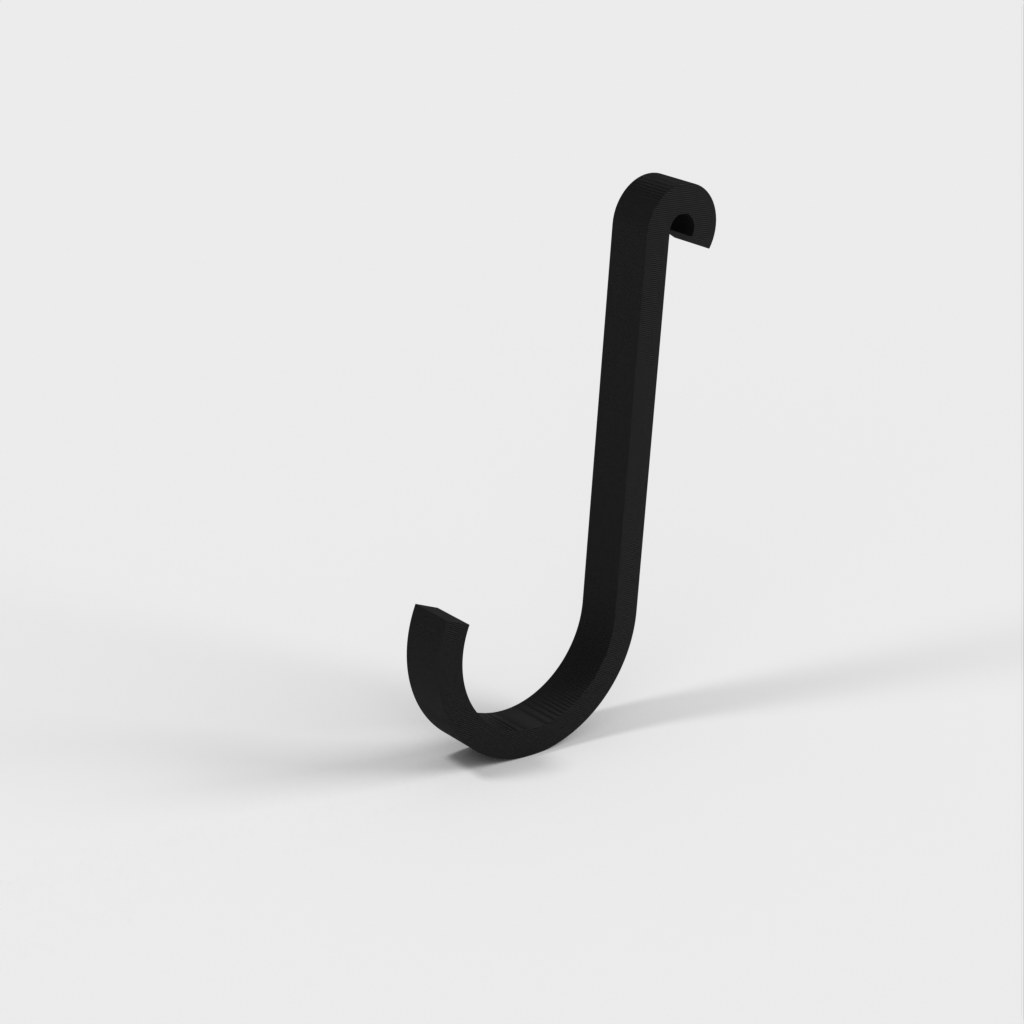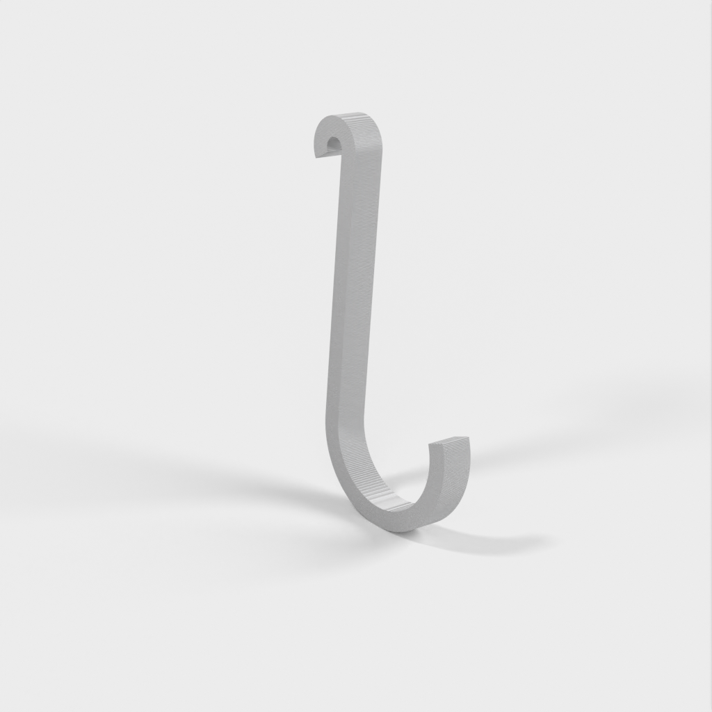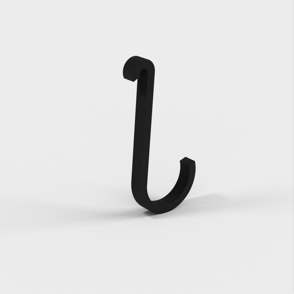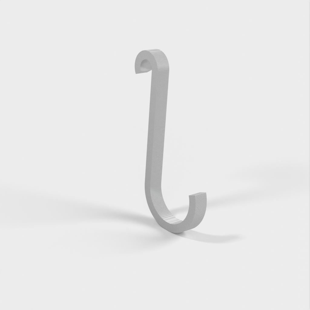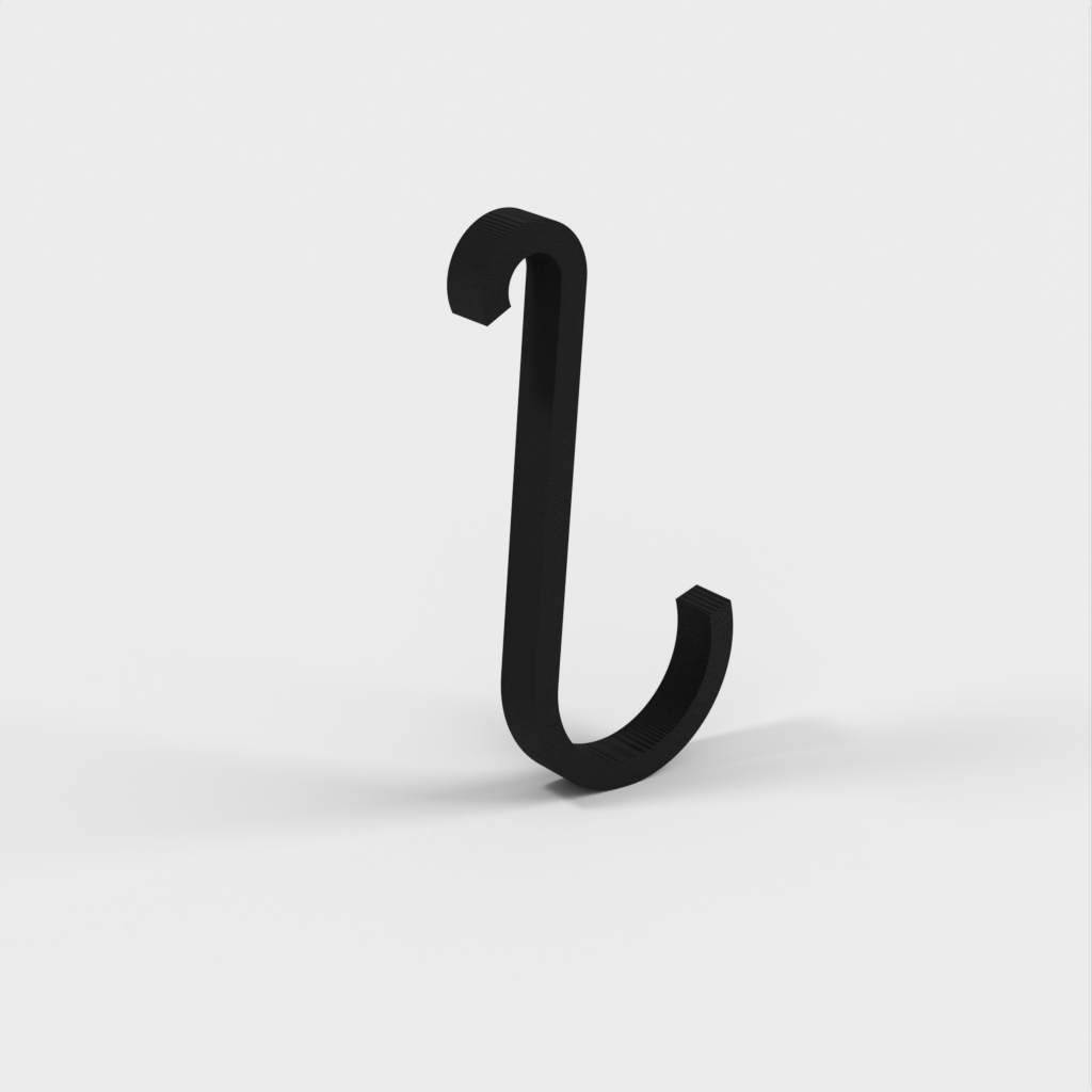 Un gancio regolabile che si adatta perfettamente alle barre dello scaffale IKEA Omar. Lo usiamo per appendere gli utensili da cucina. Il gancio si adatta perfettamente, in modo da non cadere o muoversi troppo quando si appendono o si prendono gli oggetti.