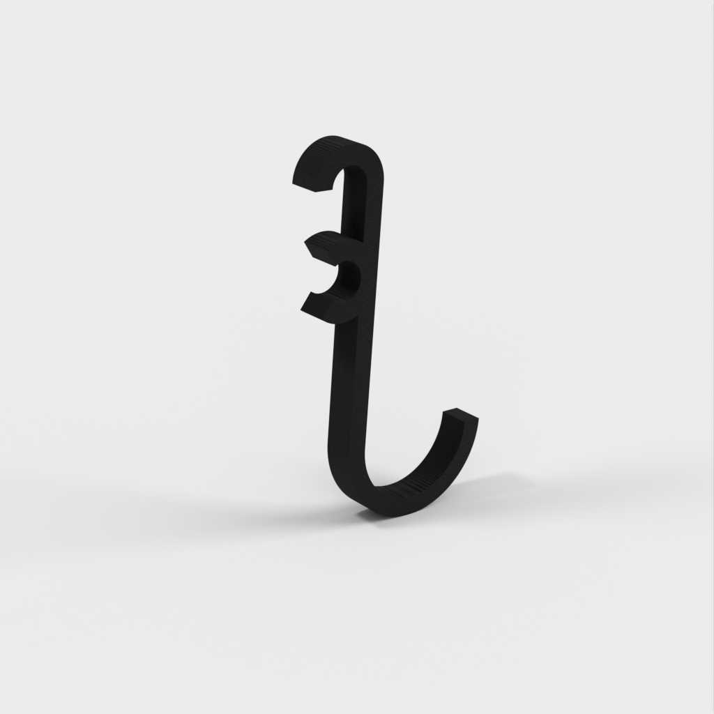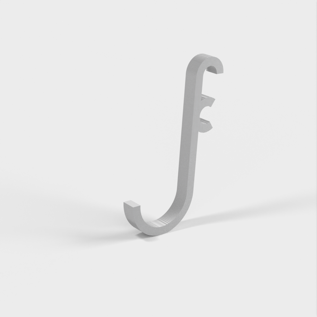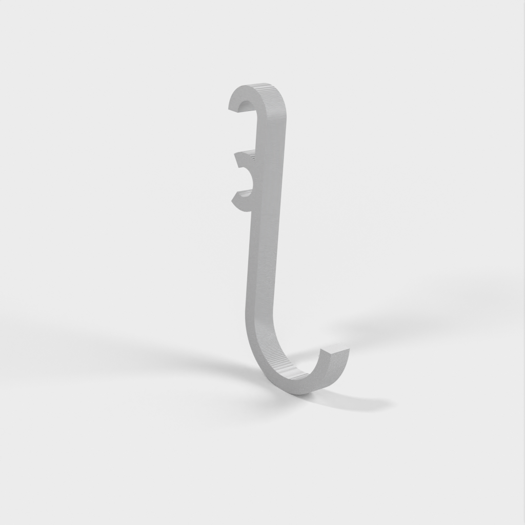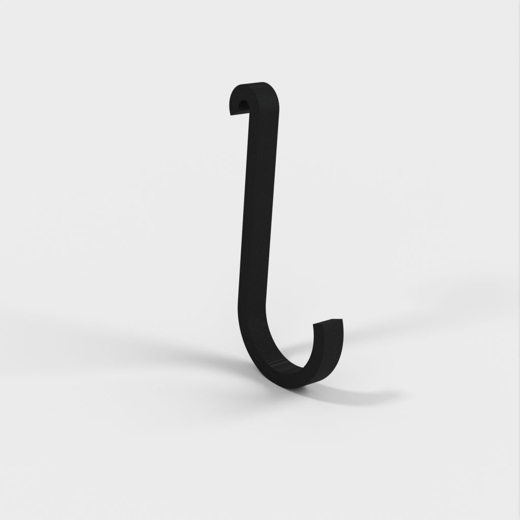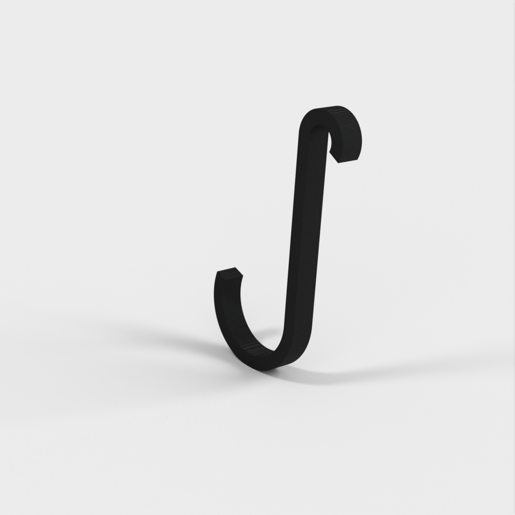 Un gancio regolabile che si adatta perfettamente alle barre dello scaffale IKEA Omar. Lo usiamo per appendere gli utensili da cucina. Il gancio si adatta perfettamente, in modo da non cadere o muoversi troppo quando si appendono o si prendono gli oggetti.