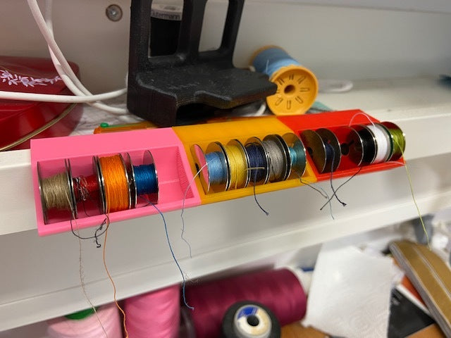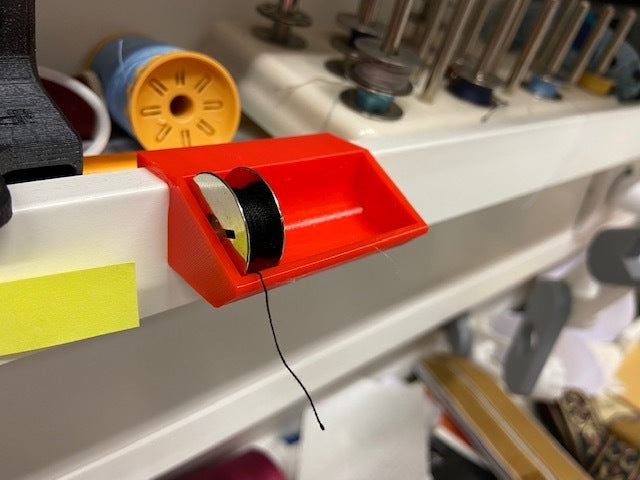 Questo portafilo è la soluzione perfetta per riporre in modo organizzato le tue bobine di filo. Progettato specificamente per adattarsi alla mensola IKEA Mosslanda, il supporto aiuta a creare ordine nel tuo spazio di lavoro, fornendoti allo stesso tempo una chiara panoramica dei colori del filo. Grazie alla sua semplice funzione a scatto, il supporto si integra facilmente nel tuo interno esistente, rendendolo un'aggiunta pratica ed elegante al tuo spazio creativo.