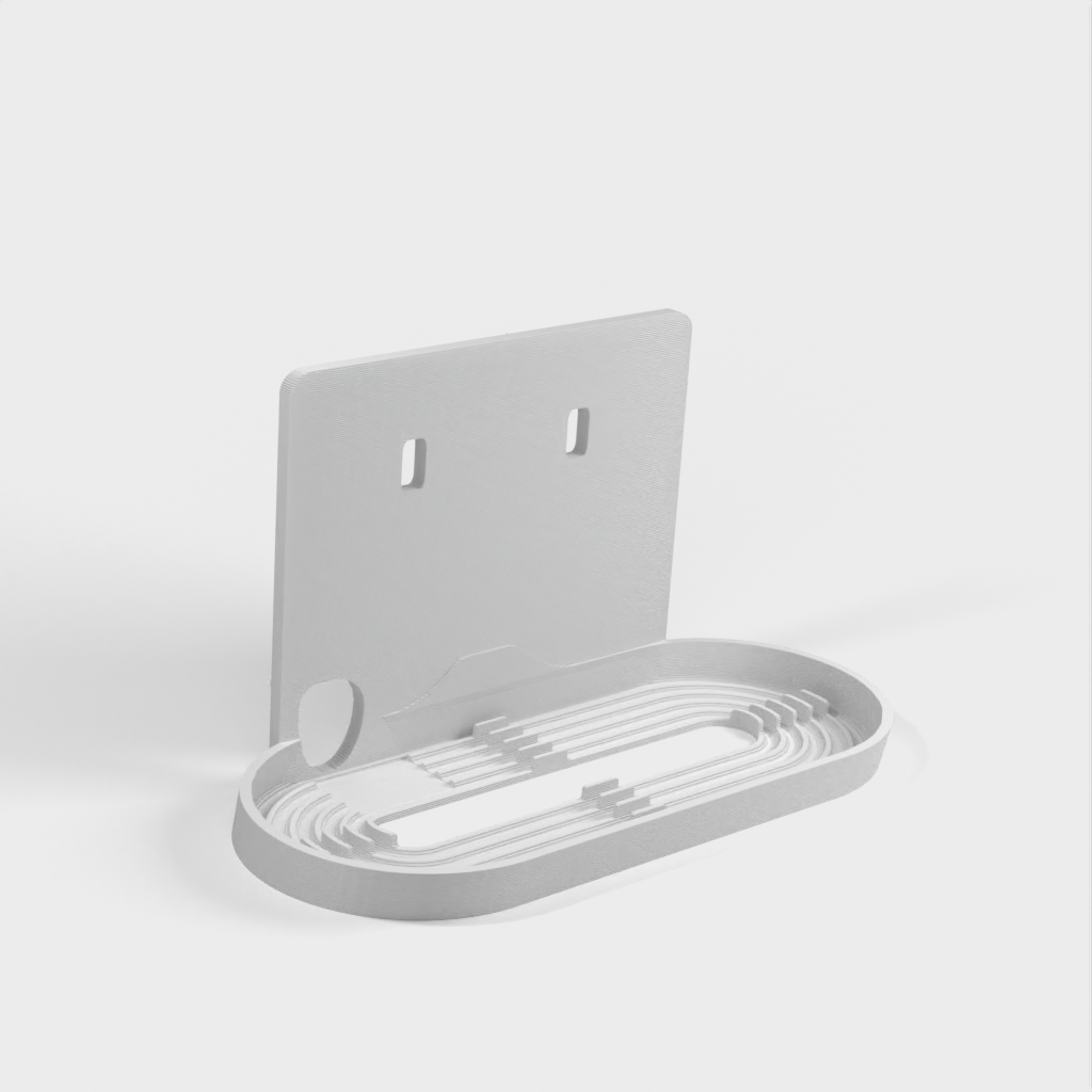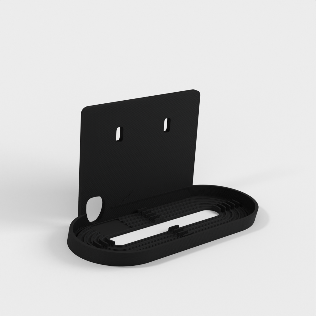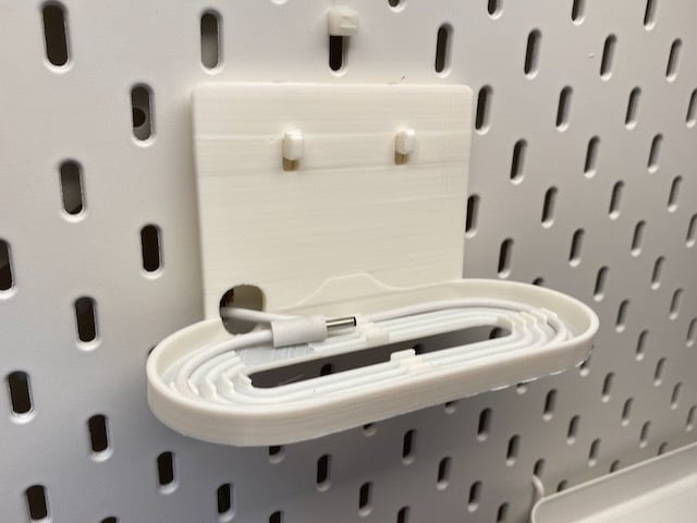Soluzione di montaggio semplice per Nest/Google Home Hub per le schede IKEA Skadis. L'hub è posizionato il più vicino possibile alla scheda e il cavo può essere instradato attraverso uno degli slot esistenti di Skadis, il che significa che nessun cavo è visibile. Richiede due ganci universali per un'installazione ordinata.