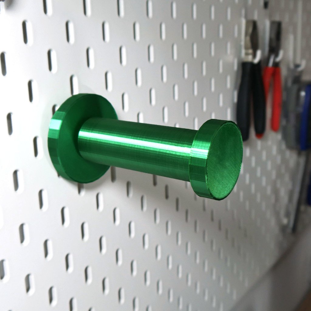 Il portarotolo Skadis è uno strumento facile da montare e smontare che si adatta perfettamente alla bacheca Skadis di IKEA. È composto da tre parti che si avvitano l'una all'altra per una facile regolazione o sostituzione. Lo speciale colore verde è prodotto con 3DJake Ultra Satin. È la scelta più ovvia per mantenere la bobina in posizione appesa alla bacheca.