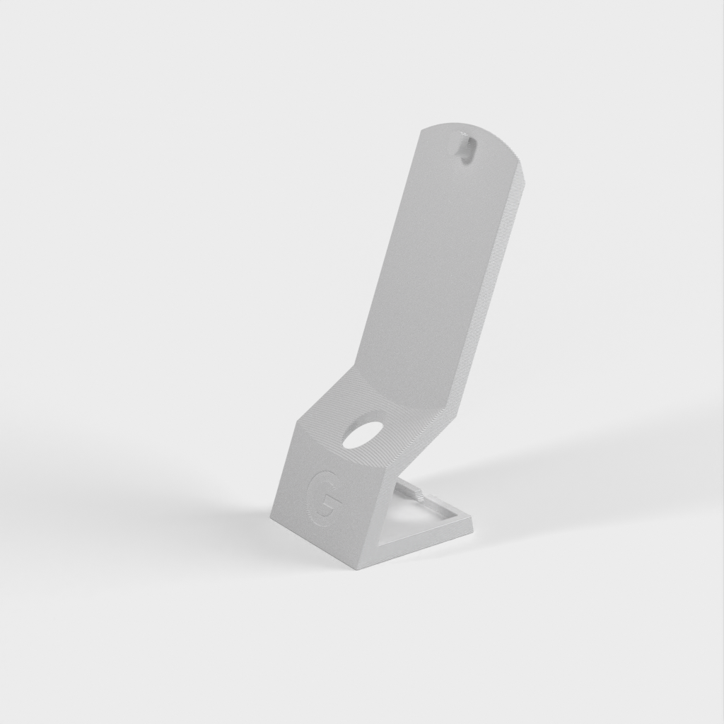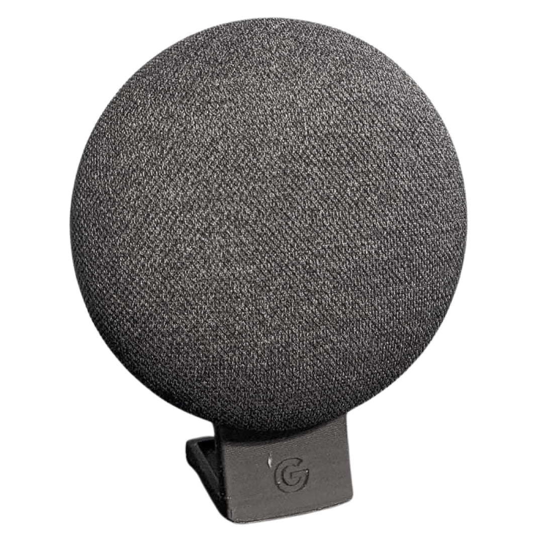 Un supporto minimalista che posiziona il tuo Google Nest Mini di seconda generazione in posizione verticale su una scrivania o uno scaffale.