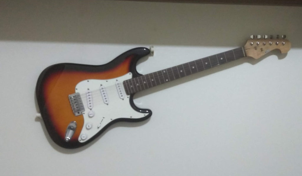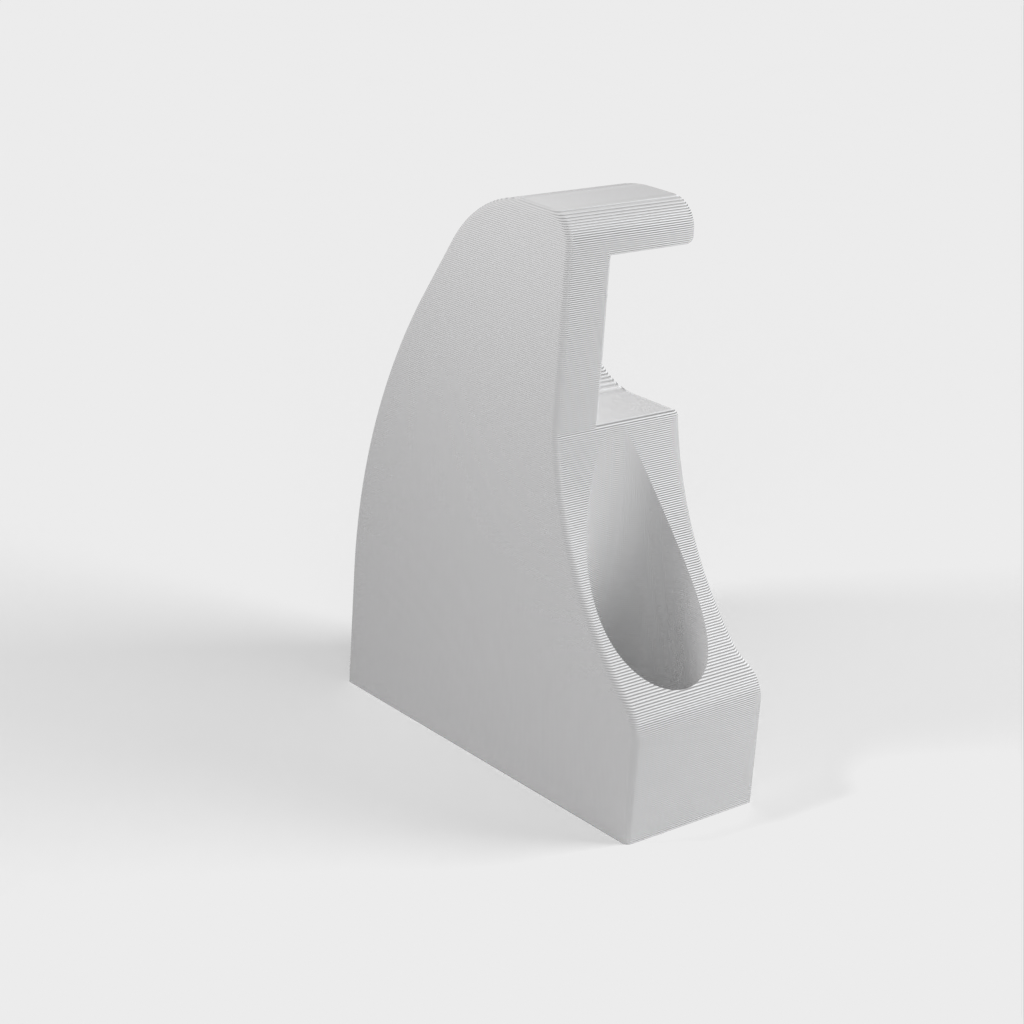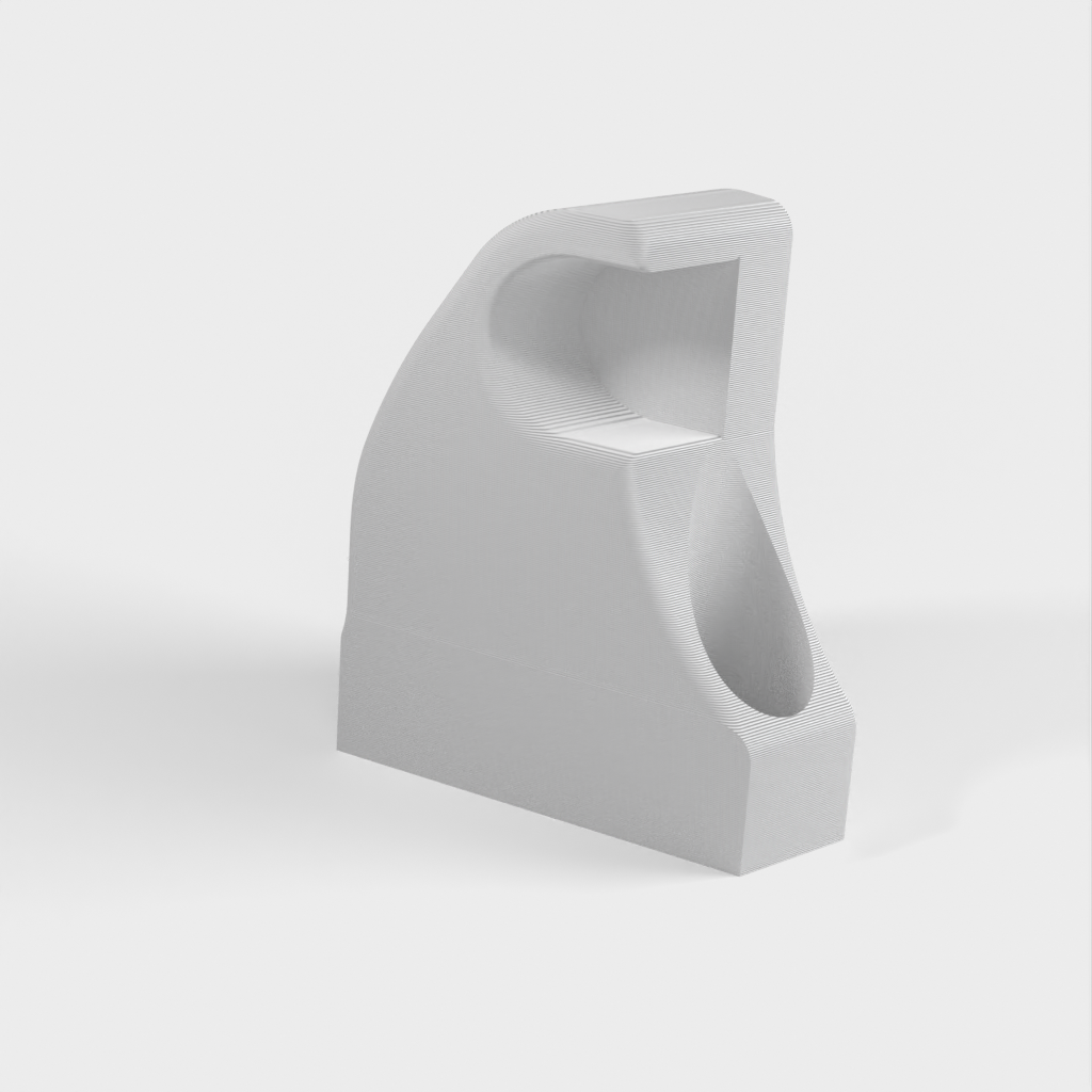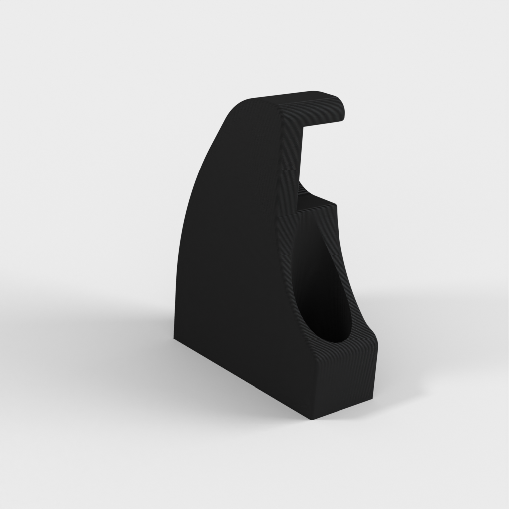 Supporto minimalista per una chitarra elettrica, dove la chitarra è appesa alla staffa per le cinghie. Il supporto è progettato in base al fatto che i supporti per le cinghie siano di 13 mm.