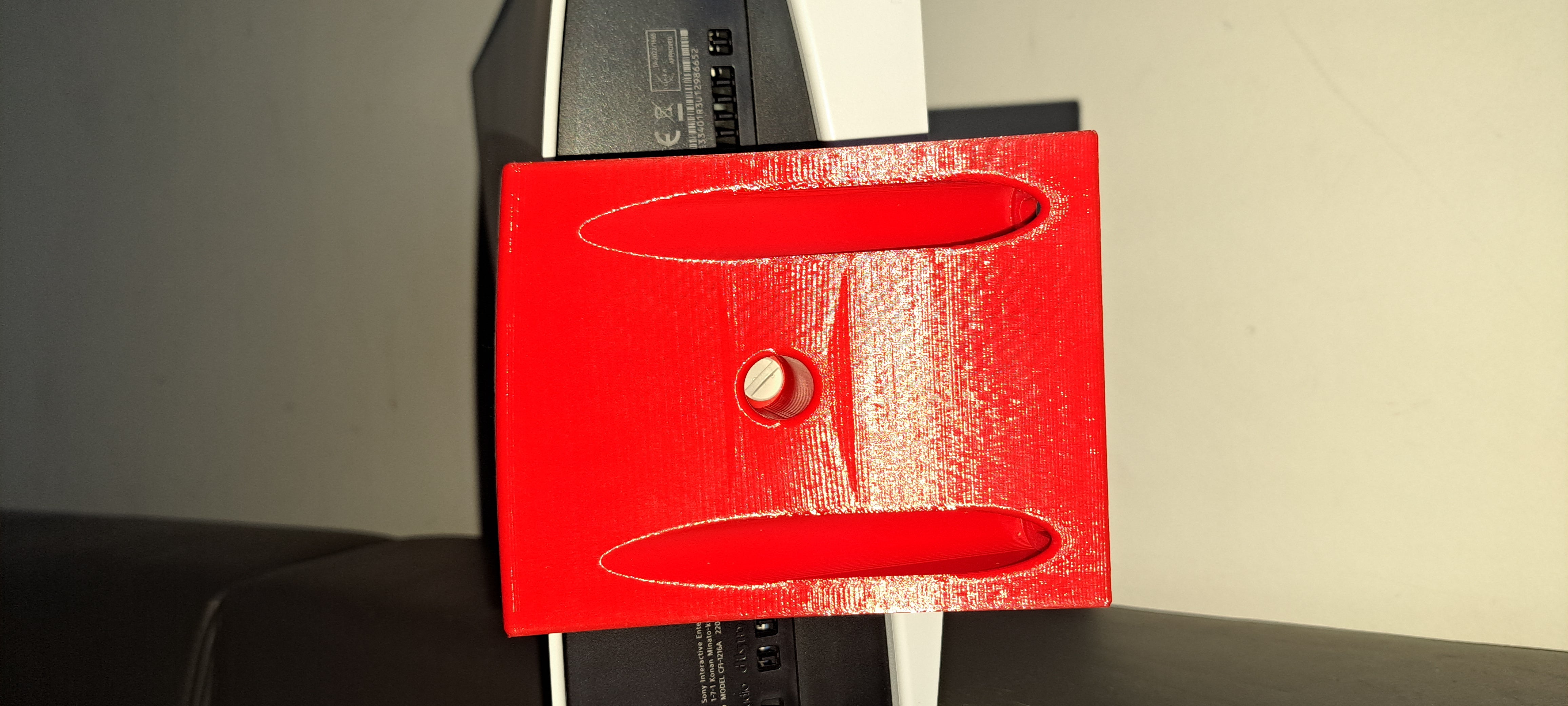 Il design del supporto è ottimizzato per mantenere la console saldamente in posizione e impedire che si ribalti, soprattutto quando si aggiungono accessori come un supporto per controller al pannello frontale. L'orientamento standard posiziona il logo PS5 ben visibile in avanti, con i cavi rivolti verso il lato sinistro. Se desideri una configurazione alternativa, il supporto può essere specchiato in modo che il logo PS5 sia rivolto verso la parete, offrendo flessibilità nell'arredamento.