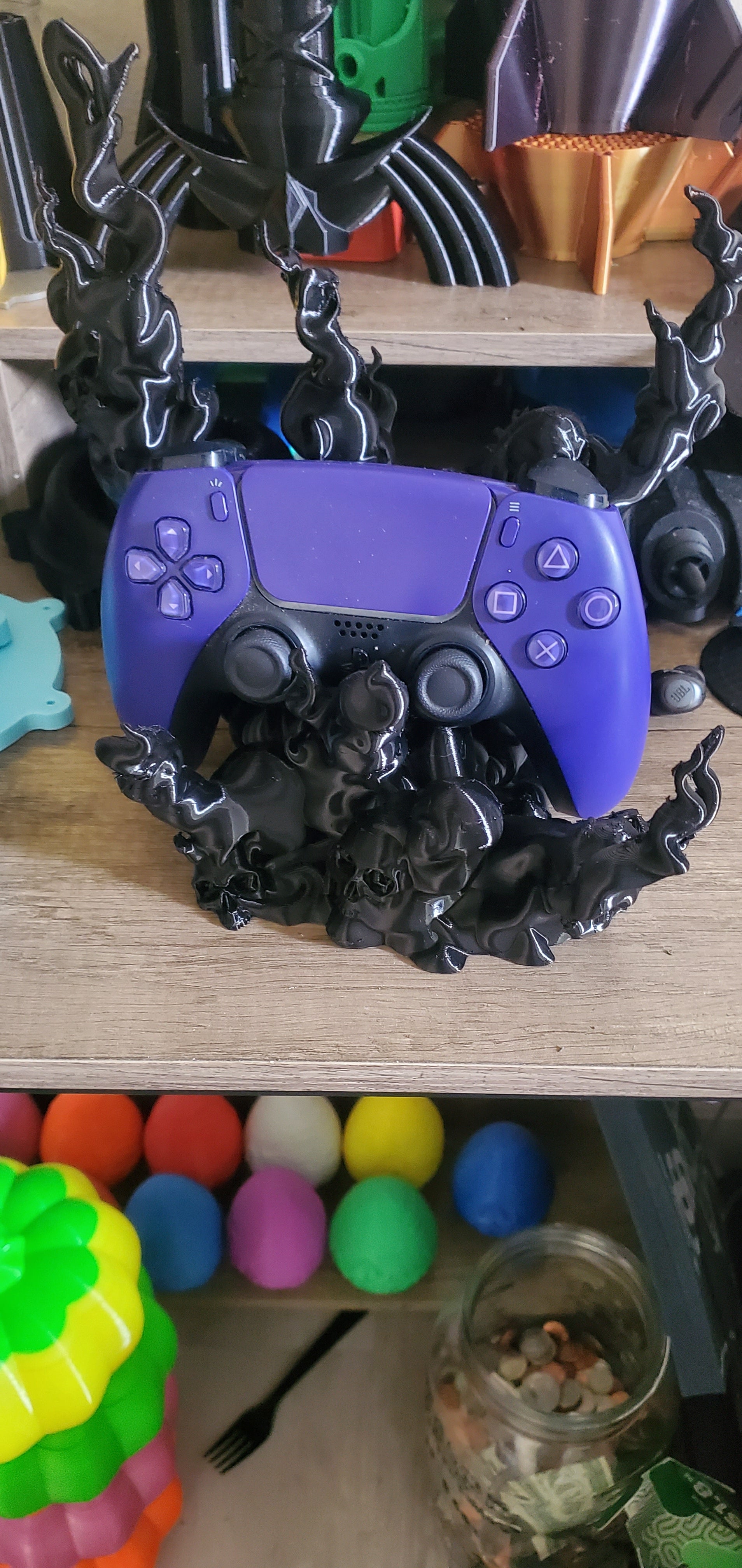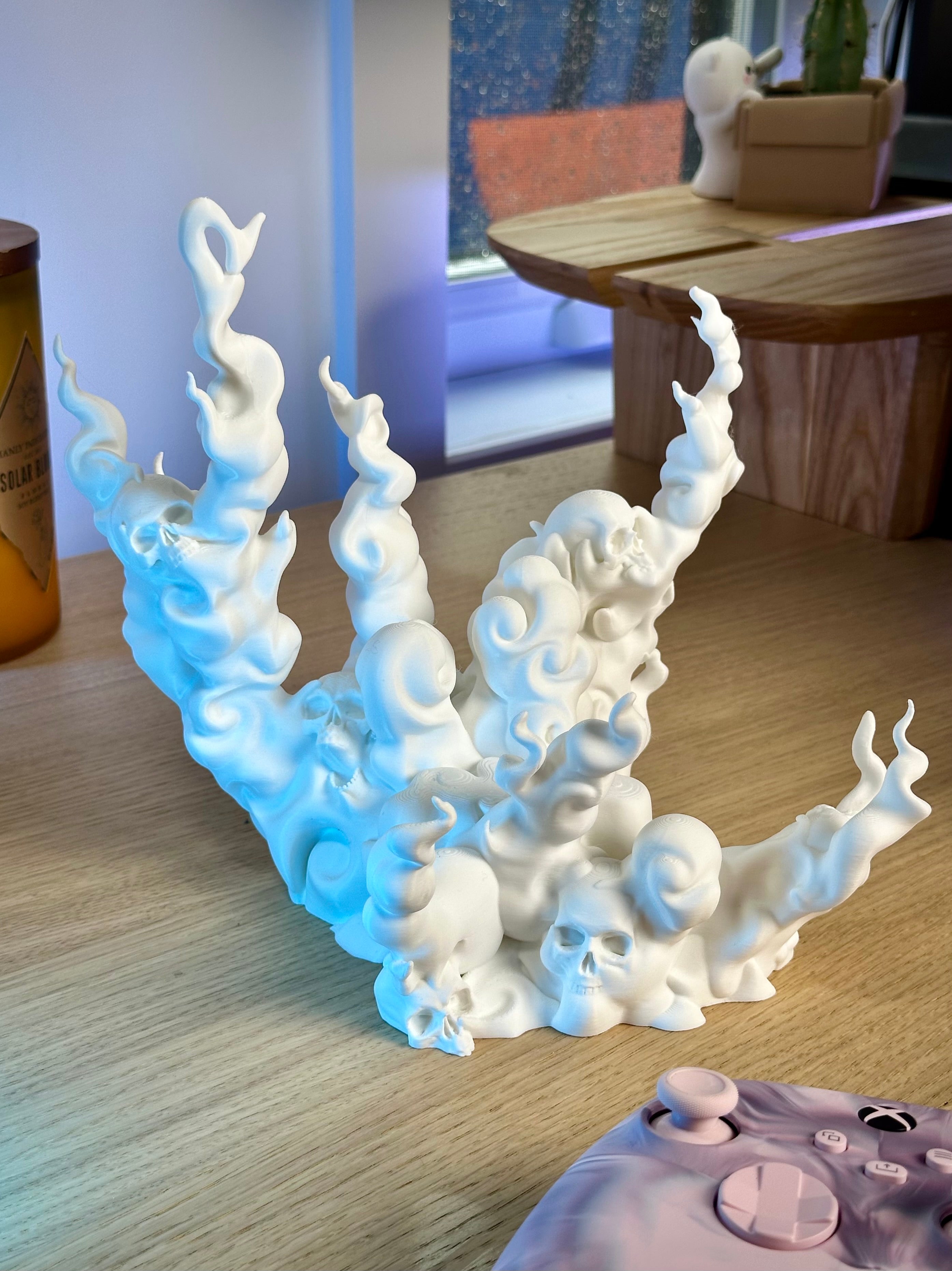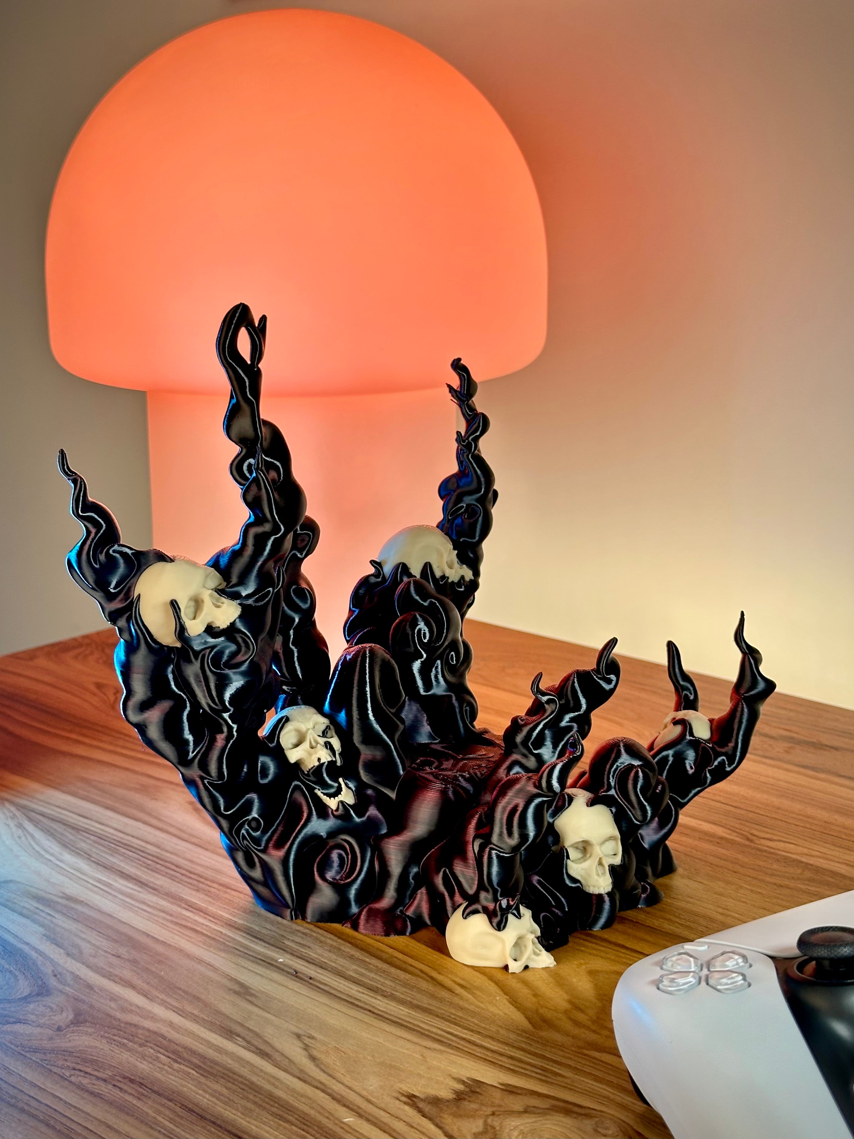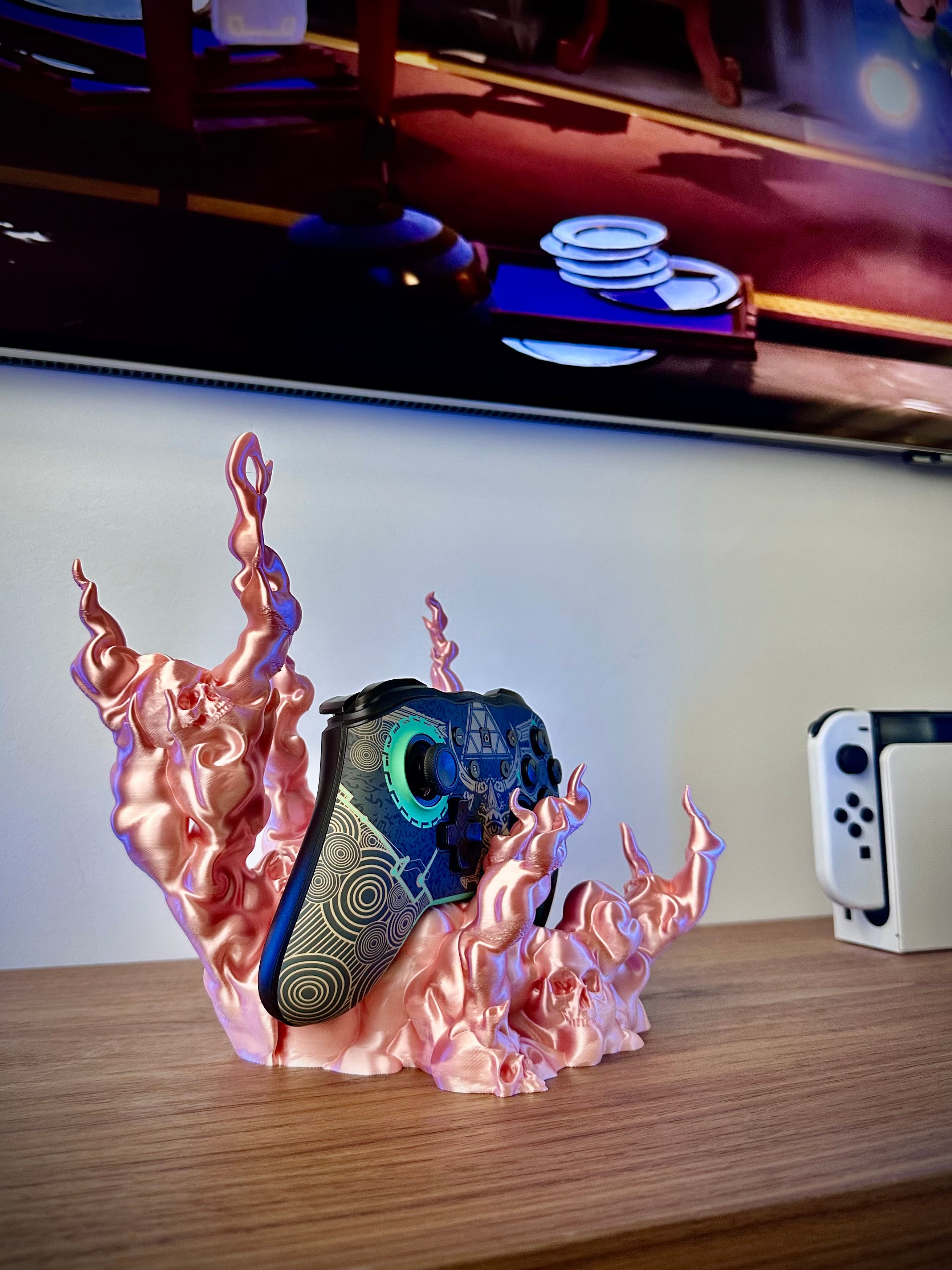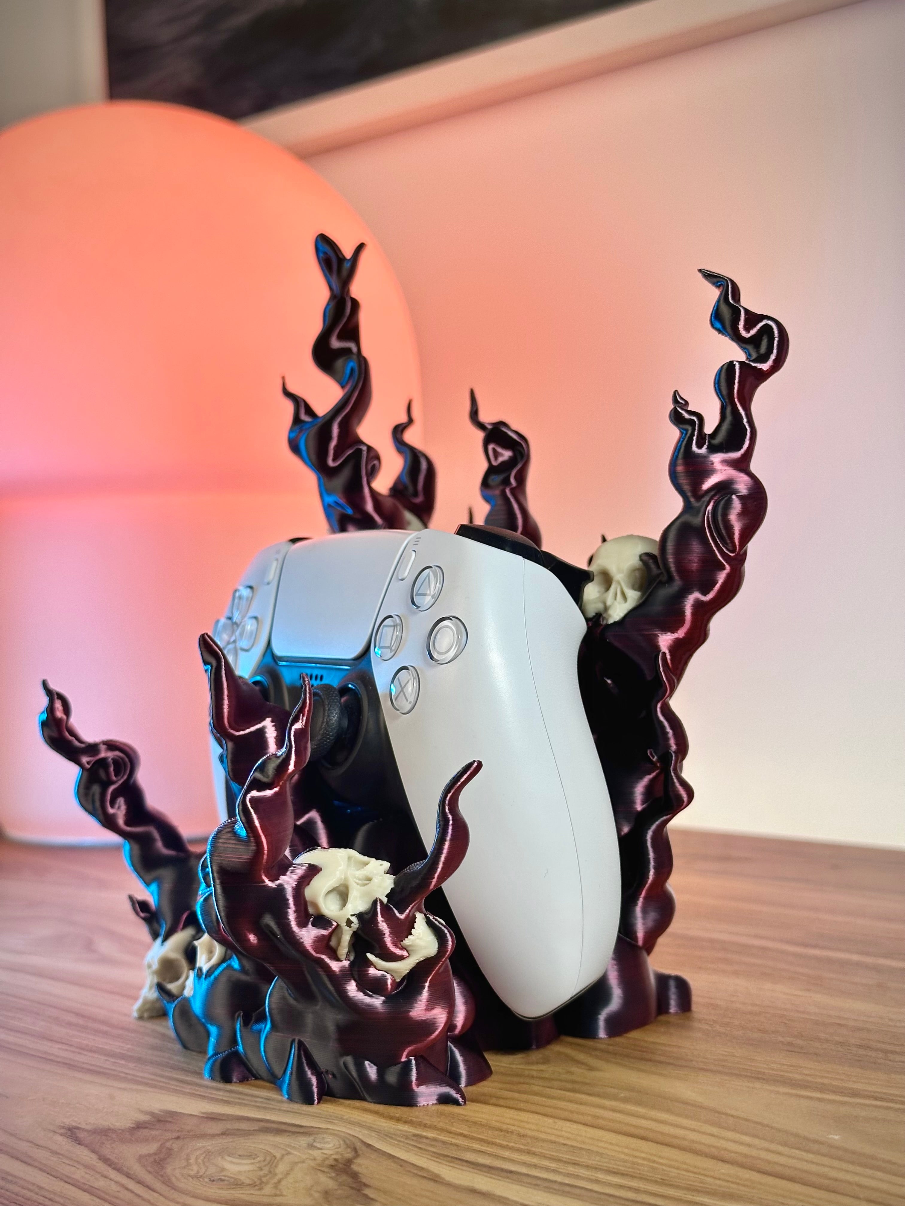L'inquietante supporto per controller, a forma di teschio con fumo, tiene saldamente in posizione il tuo controller da gioco. È compatibile con i pad PS5, PS4, Xbox e Switch. Aggiunge un fantastico elemento fantasy al tuo setup di gioco.