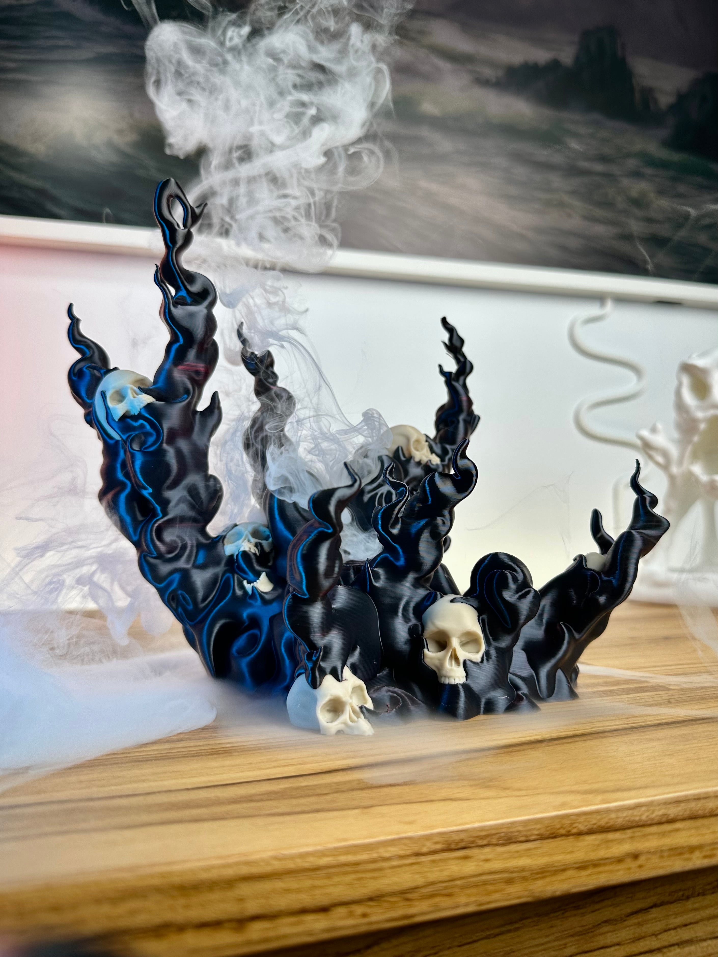 - Unik holder formet som et kranie med et røgfyldt, uhyggeligt design.
