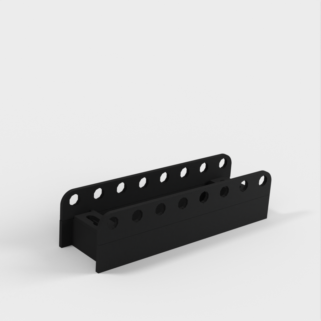 Un supporto per cacciavite progettato per essere montato su una superficie con un bordo da 20 mm. Questo supporto aiuta a organizzare e ad accedere facilmente al tuo cacciavite, rendendo più ordinata la tua officina, il tuo capannone o il tuo veicolo da lavoro.