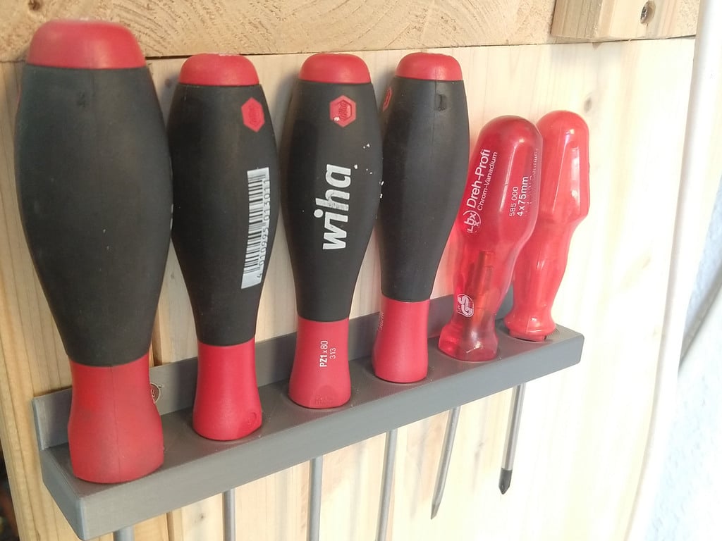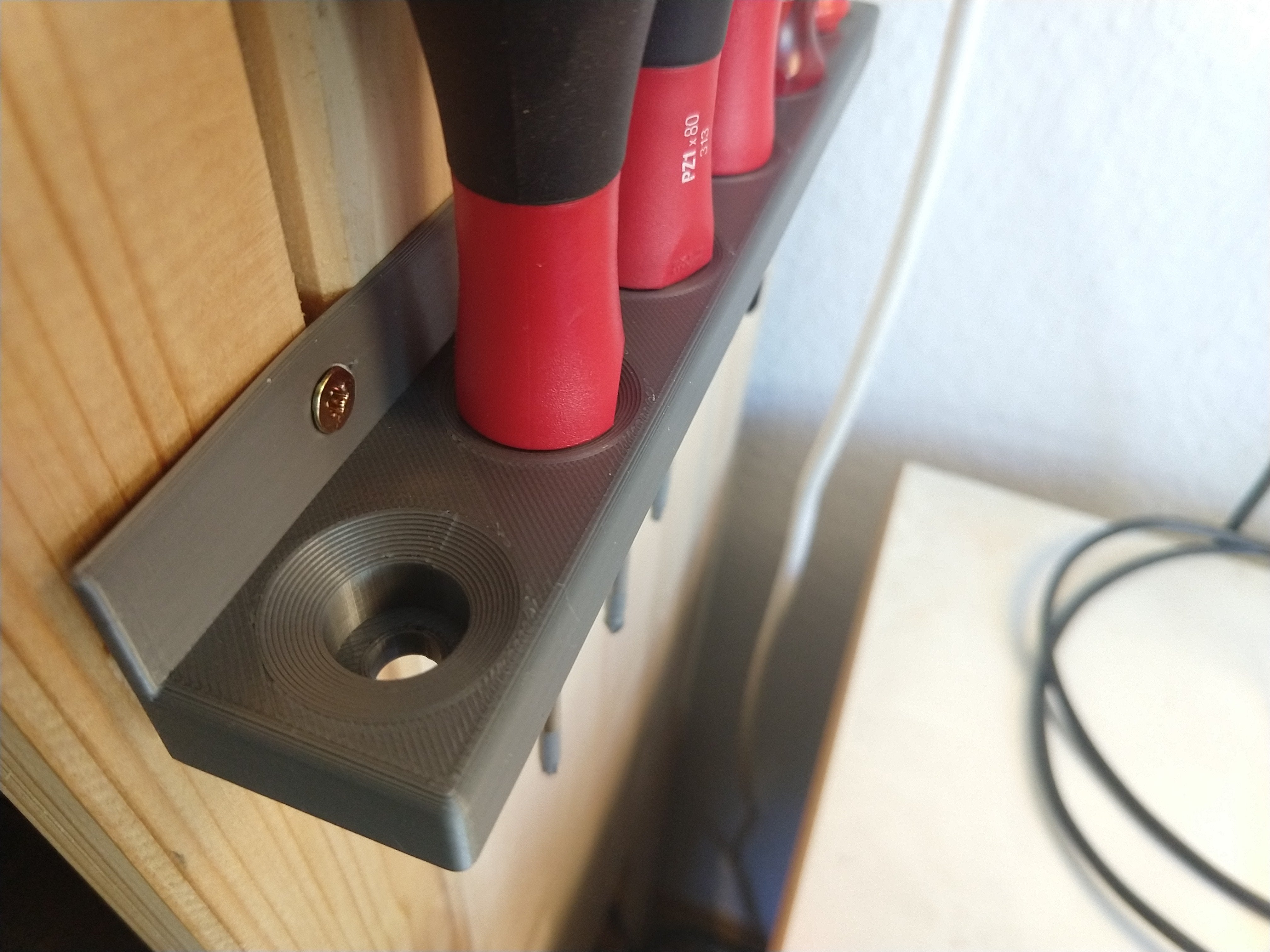 Questo è un semplice supporto per i cacciaviti Wiha Soft Touch che li tiene saldamente. L'ultima versione ha 8 aperture per PZ1, PZ2, PH1, PH2, TX10, TX15, TX20, TX25.