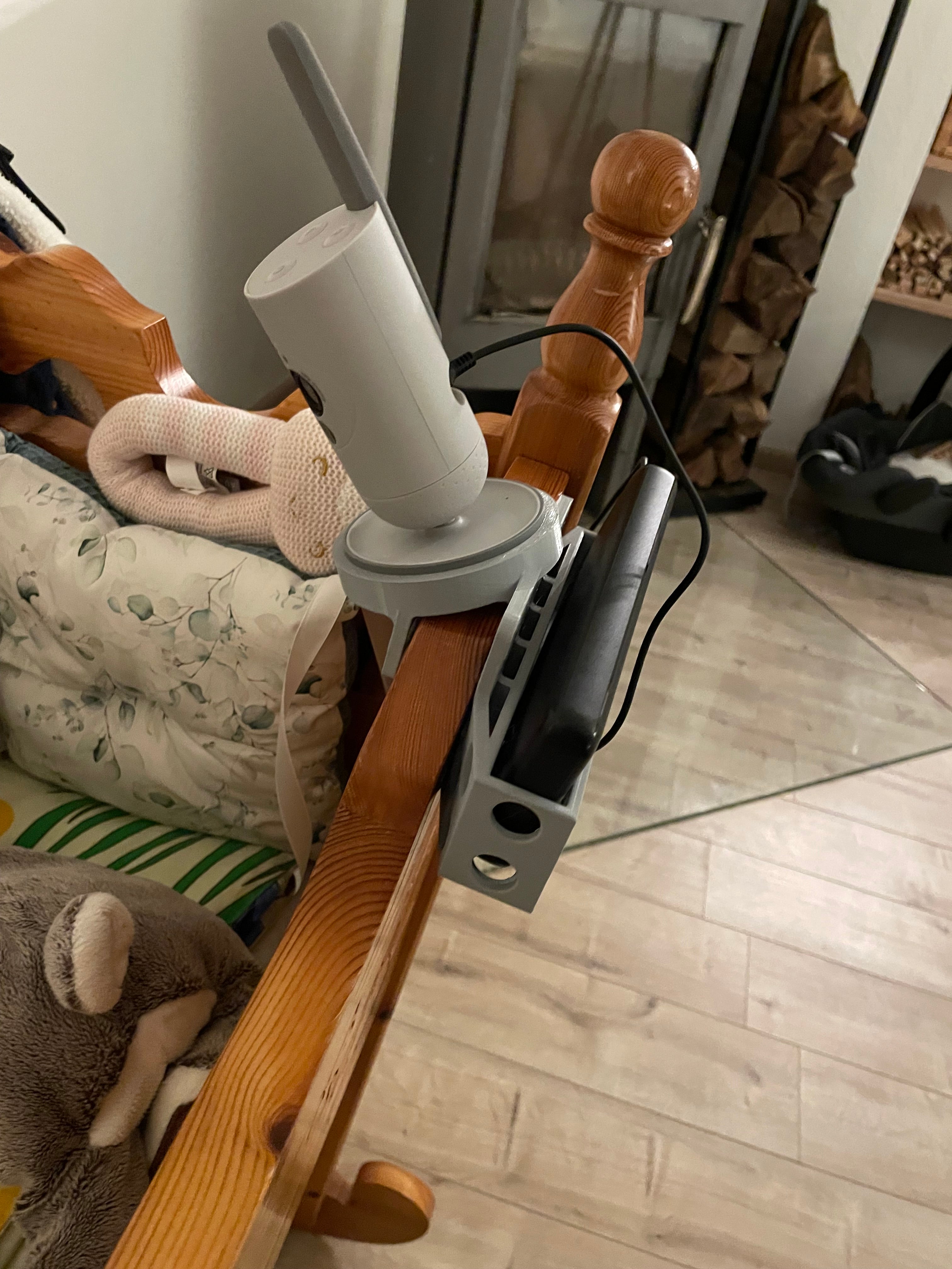 - Compatibile con baby monitor fino a 70 mm di supporto.