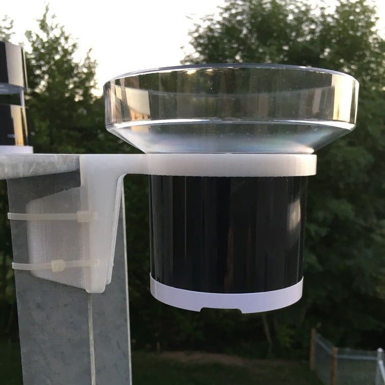 Semplice supporto per un pluviometro Netatmo, in modo da assicurarti che raccolga tutta l'acqua. È progettato per una ringhiera poiché misura 41 mm in profondità e 9 mm in larghezza.