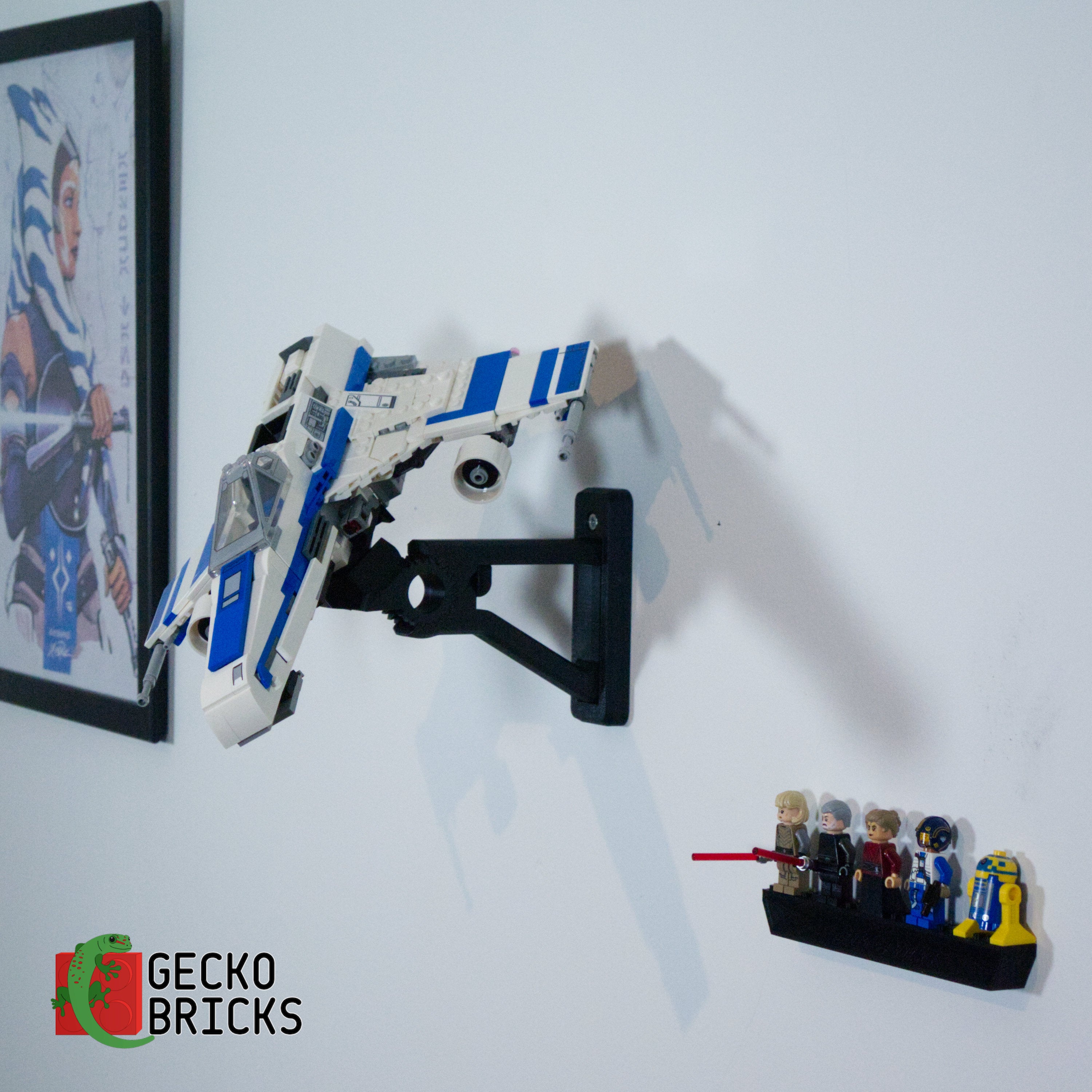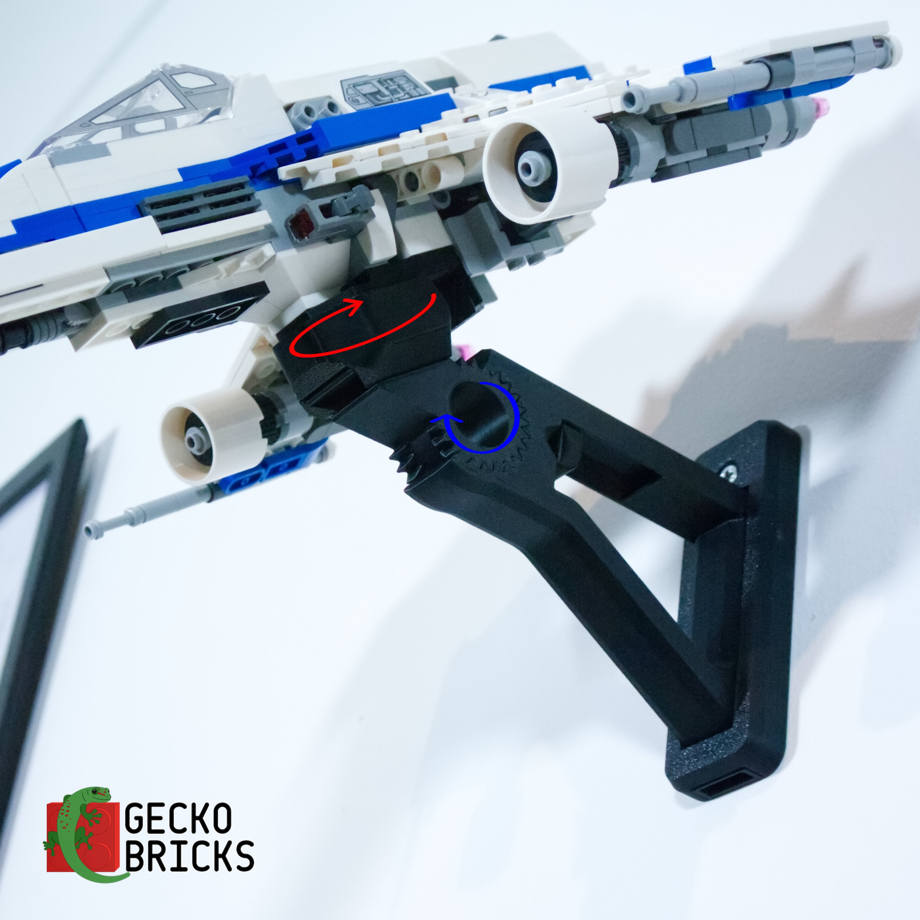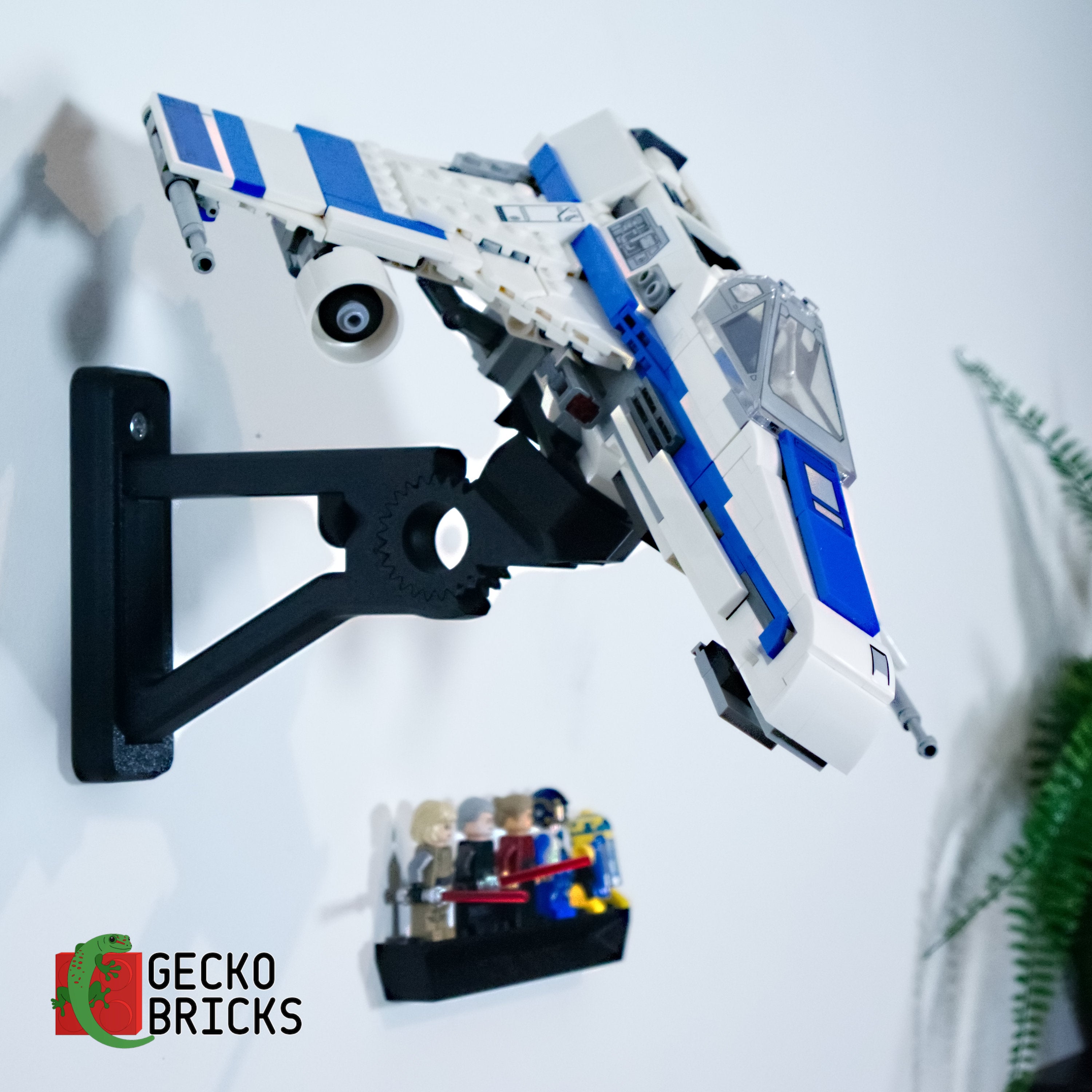 Questo supporto da parete regolabile è progettato specificamente per l'E-Wing 75364 di Star Wars New Republic. Permette di esporre il modello da diverse angolazioni e orientamenti, mettendo in risalto i dettagli. Il supporto include anche un attacco separato per le minifigure e rende facile rimuovere nuovamente il set dal muro.