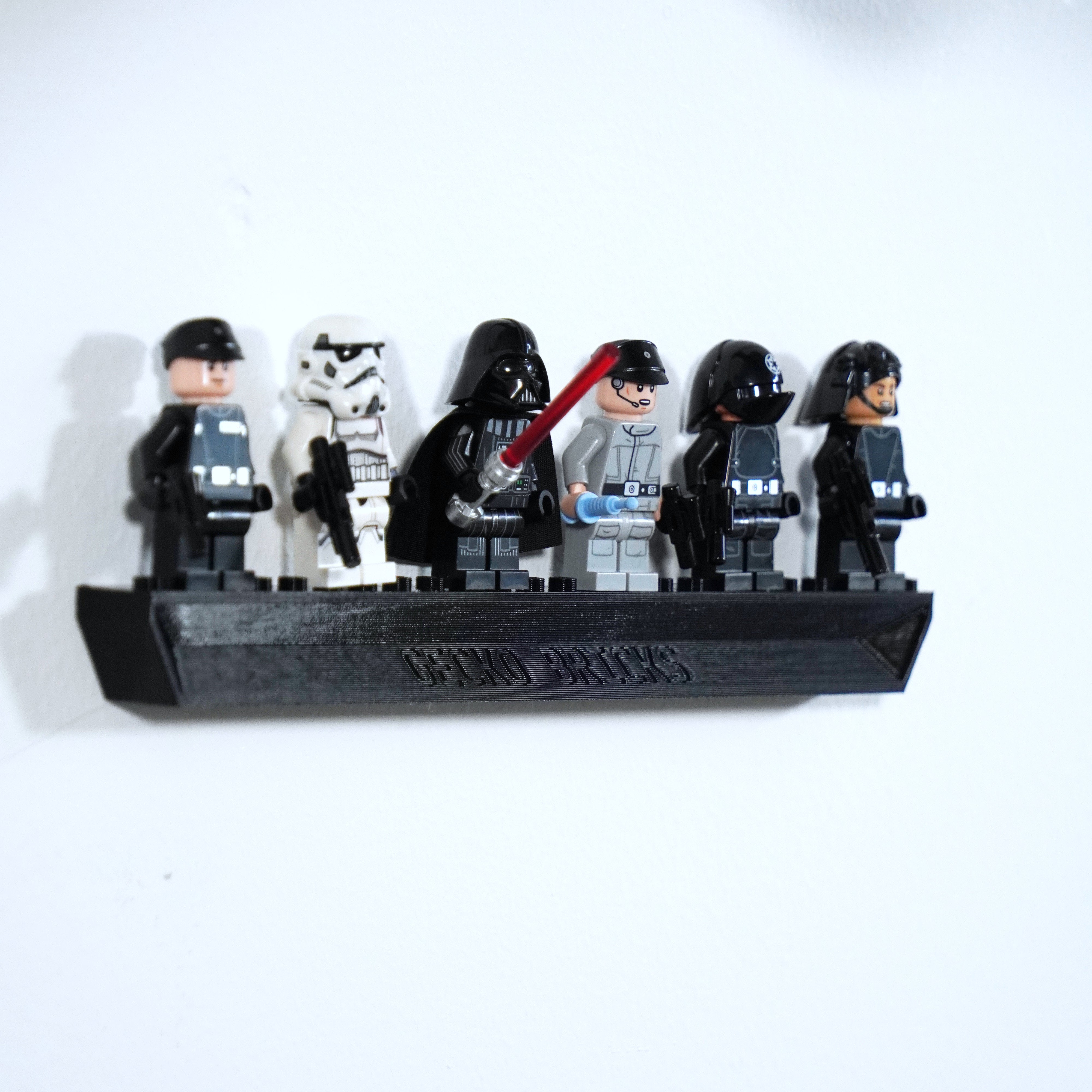 - Include un supporto separato da parete per l'esposizione delle minifigure