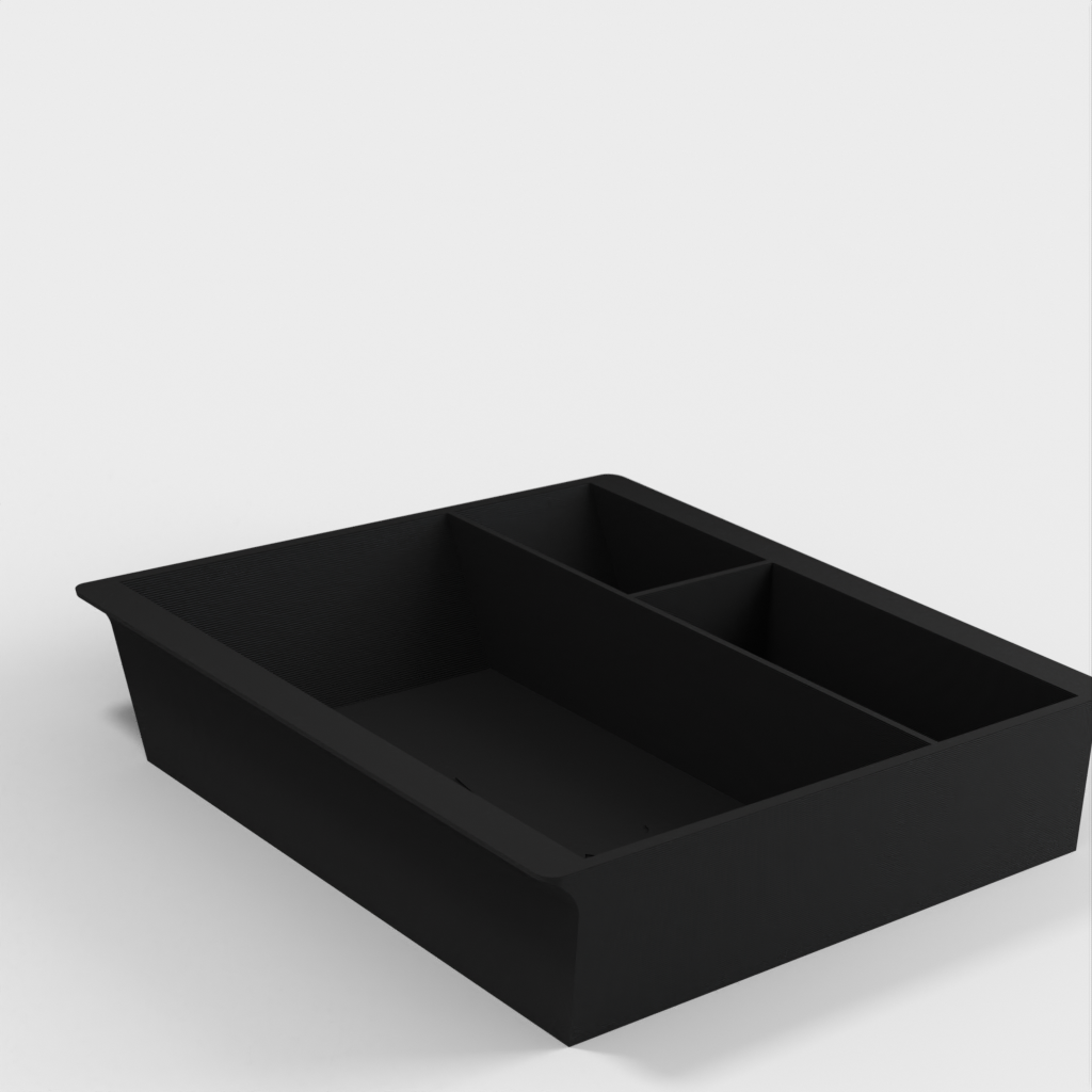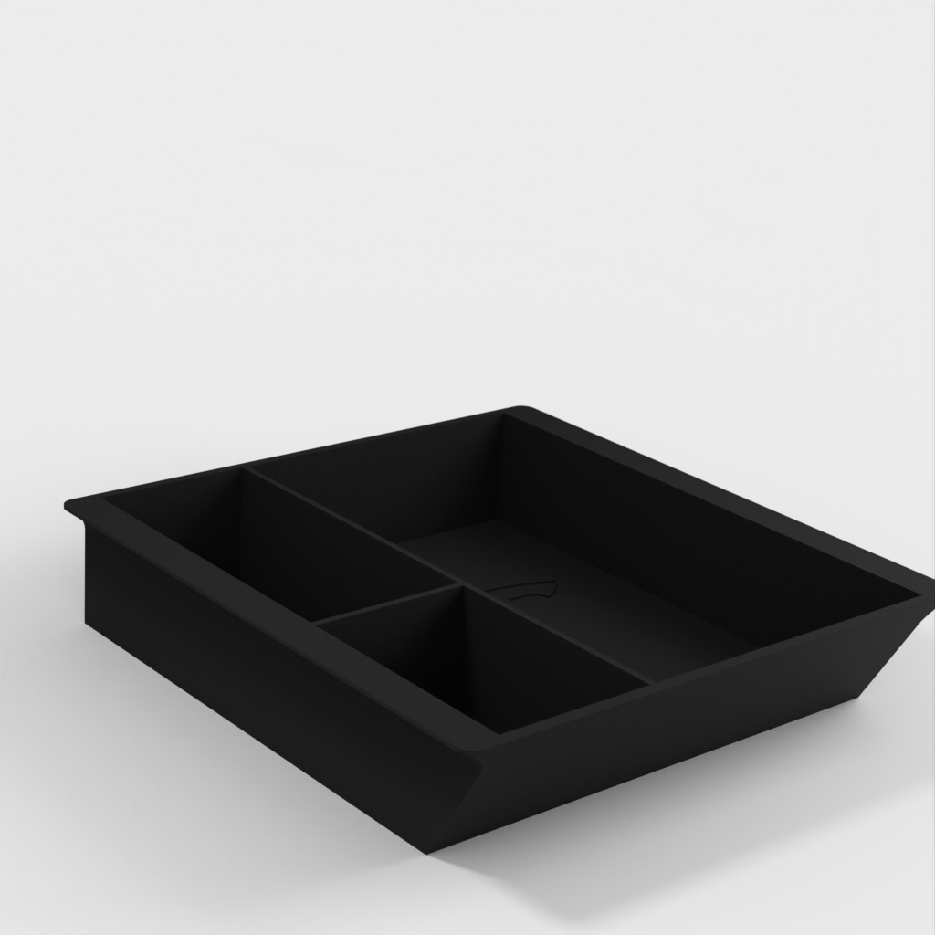 Vassoio rinforzato per console centrale per Tesla Model 3 e Model Y del 2021-2022. Viene aggiunto 1 mm in più alla parte inferiore per rinforzare il vassoio. È disponibile anche una variante senza il logo Tesla.